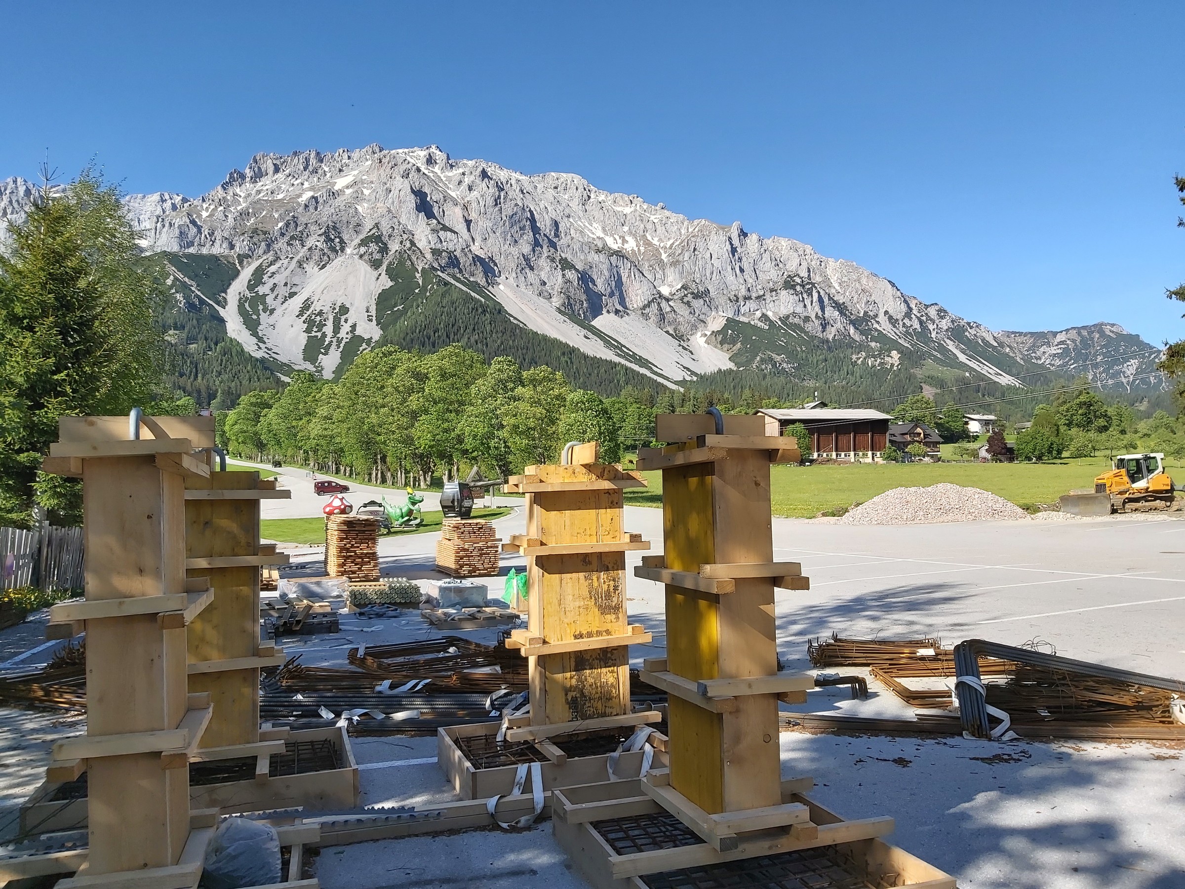 Heute werden die Stützen geflogen, wer das mitverfolgen möchte. Das heli Team ist schon am Parkplatz.