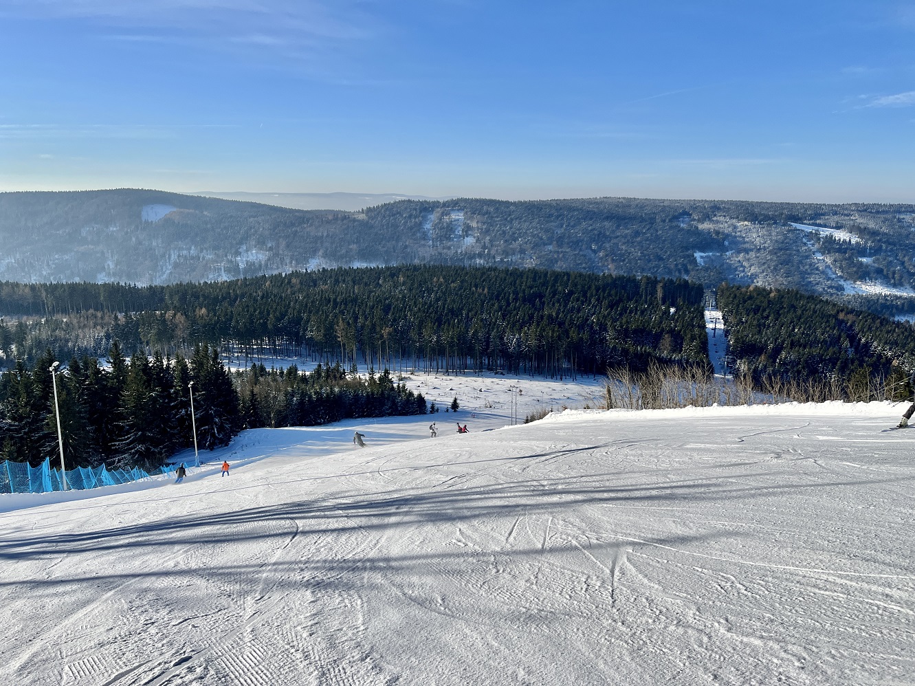 Sonst aber bin ich immer wieder gern dort - Abwechslung ist gegeben und einen Rodelhang gibt’s auch. Der Parkplatz am Hang ist auch für Langläufer geeignet, das Panorama reicht vom Velky Spicak über Klinovec bis zum Fichtelberg.