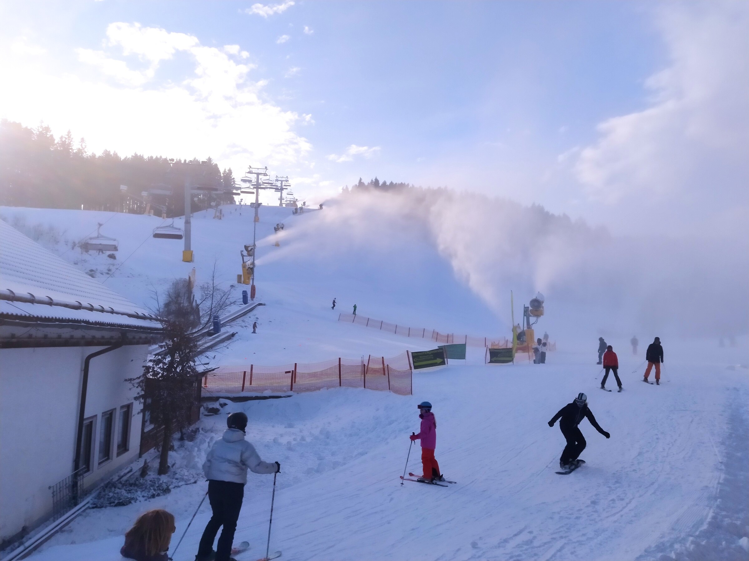 Oder ... man möchte jetzt bei der Vollbeschneiung den Gästen am Poppenberg, der durch die zahlreichen Schneekaonen besonders intensiv beschneit wird, eine Abfahrt nicht zumuten.