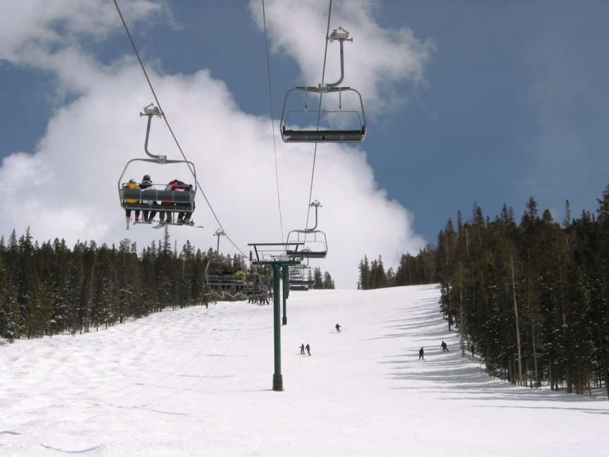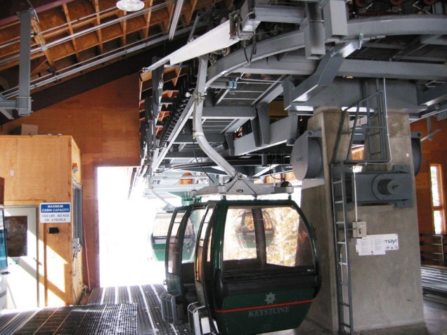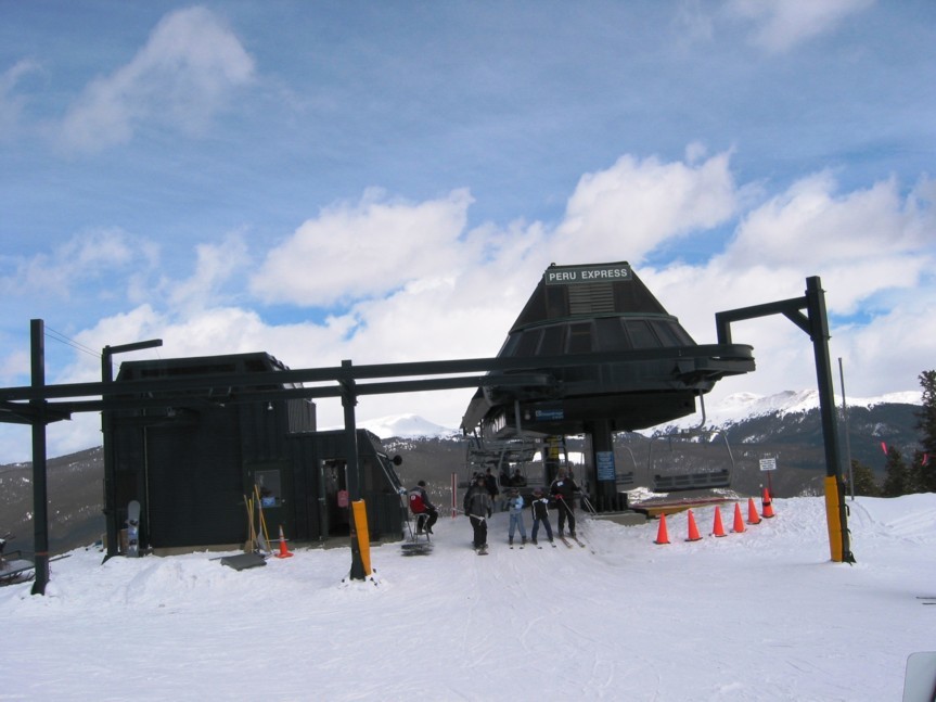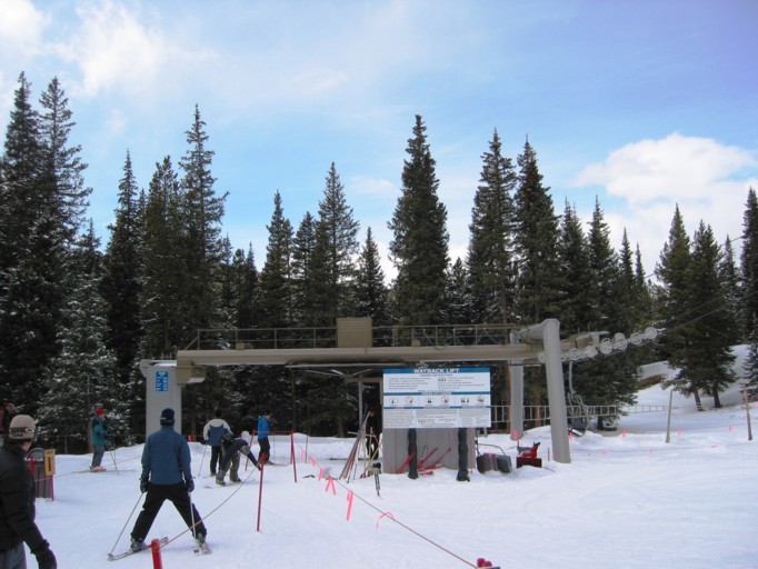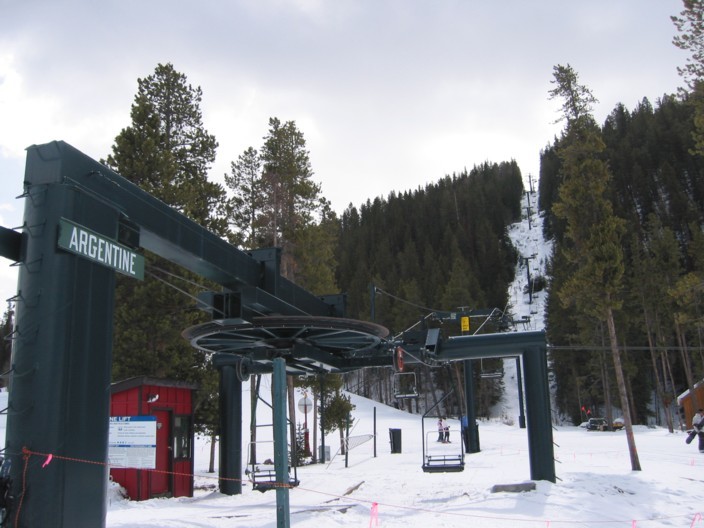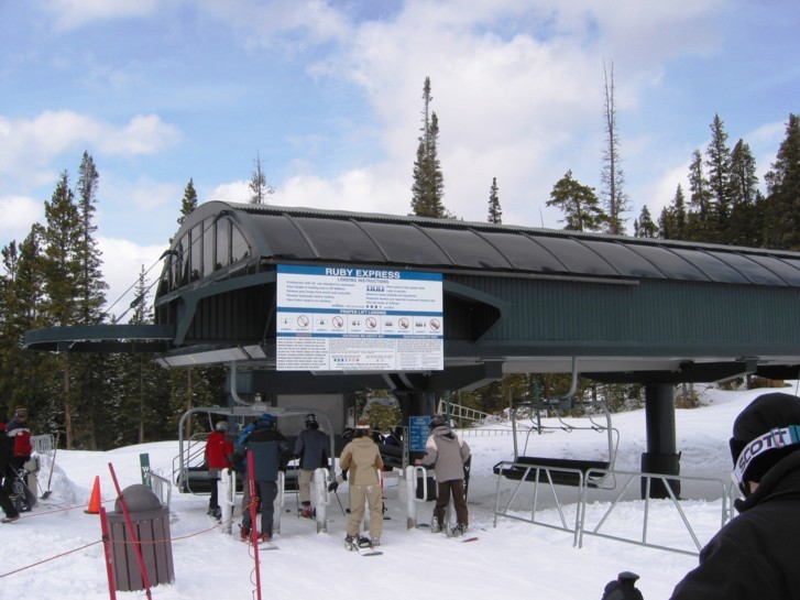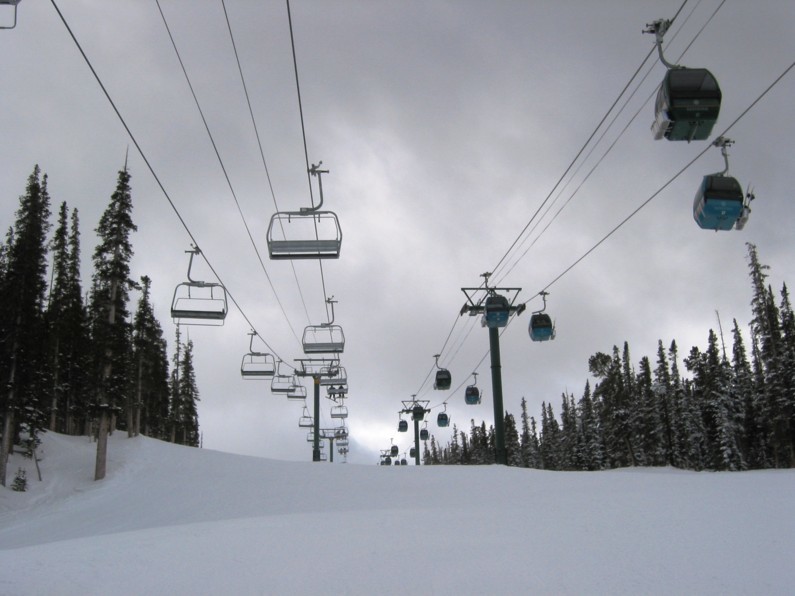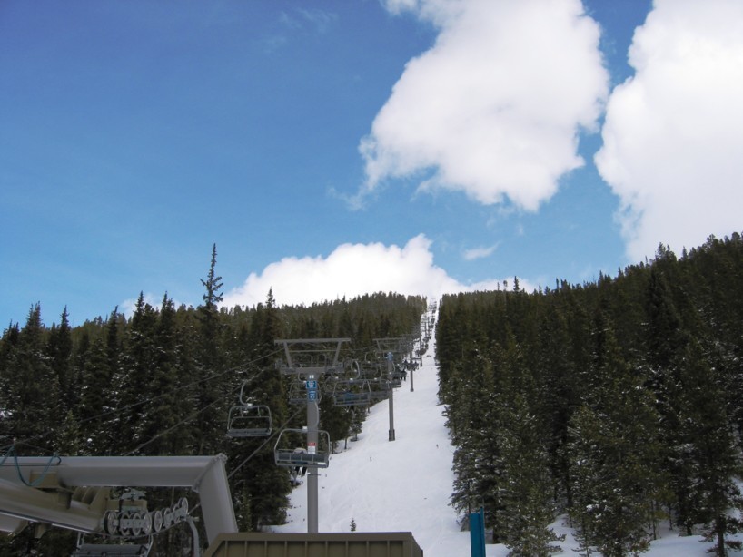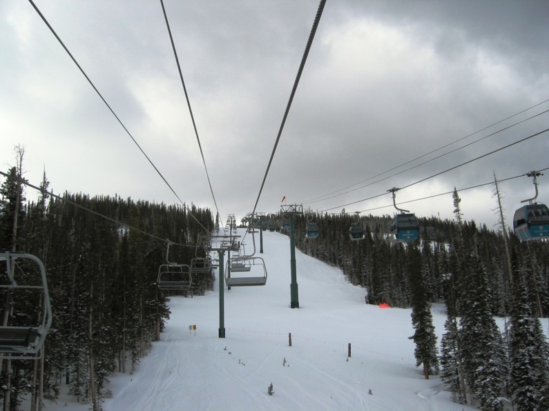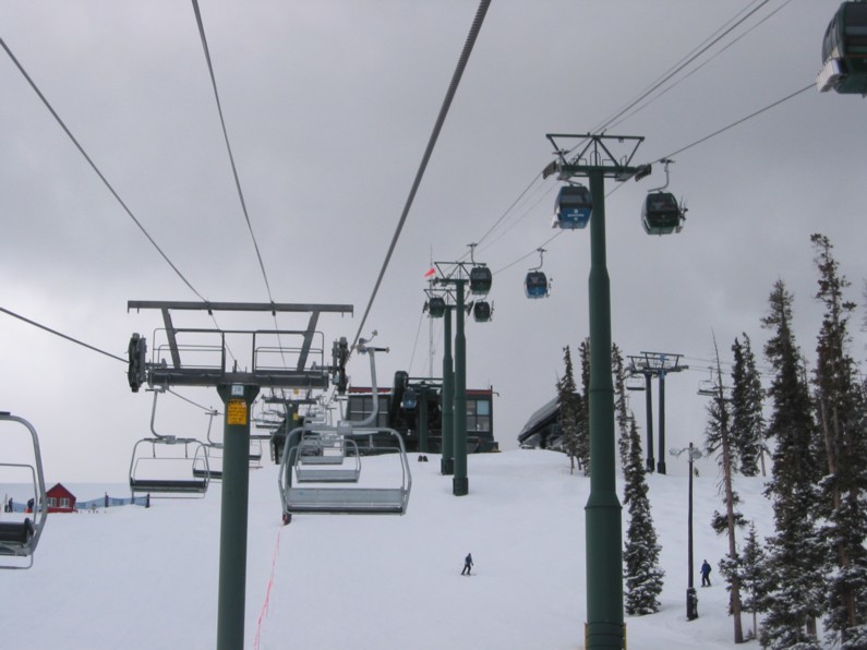 tatsächlich sehr effizient, an einem Samstag weniger Wartezeit (Spring break!) als in Copper unter der Woche. Hauptachse zum Keystone Mountain sehr stark (2400+2800 p/h) parallel, wo gibt’s so etwas noch? Die 6EUB River Run ist bequem, aber mit 4 m/s recht langsam, braucht gute 3 min länger hinauf als die 4KSB Summit Express, die mit 5,6 m/s die EUB richtig aussticht, wegen Höhenlage und Fahrtwind aber recht zugig ist. In der EUB dagegen warm und gemütlich, Mütze & Handschuhe aus und bequem Essen, also Komfortvorteil. Wer dagegen kälteresistent ist (viele Amerikaner mit Helm und/oder Sturmhaube) und schnell nach oben will, dem sei die KSB ans Herz gelegt, immer weniger los als an der EUB, wo man doch manchmal etwas wartet, zumal wenn abends die Fußgänger hinauf zum Essen fahren und die Fußgänger auch zu zweit vom Personal eine eigene Gondel bekommen und mir der Liftboy meine Skier wieder aus den Halterungen rausstellt (sorry, woher soll ich wissen, dass die Sonderbehandlung genießen?). Überhaupt, die Liftboys reißen einem die Ski aus der Hand und stellen sie in die Halterungen bzw. holen sie einem an der Bergstation wieder raus. Nett, aber das kann ich gerade noch selbst. Ansonsten keine Klagen, die 4SB Wayback als KSB und dann fährt man nur noch schnelle Anlagen. Da man Wayback aber nicht als Beschäftigungsanlage braucht und vielleicht einmal am Tag fährt als fixe 4SB völlig okay. Alle fixgeklemmten SBs haben übrigens Sicherheitsbügel, die 4SB Wayback auch Fußraster. Wegen der immer recht großen Höhenunterschiede sind die Anlagen auch alle den Pistenbenutzern gewachsen.
