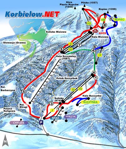Wie schon gesagt, sind die drei Skigebiete nicht miteinander verbunden, was sich aber durch den Neubau von nur 2 Liften (4 wären allerdings besser dann wären die dazugehörigen Pisten nicht so flach) problemlos beheben lassen könnte, wenn man sich nur mal einig wäre. Aber das mit der Einigkeit hatten wir ja schon bei Szczyrk…