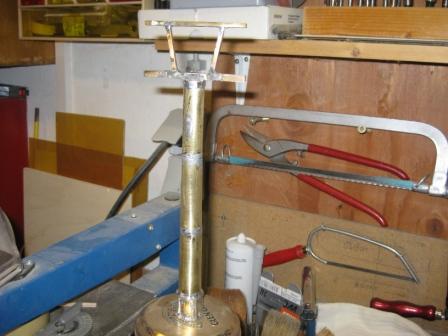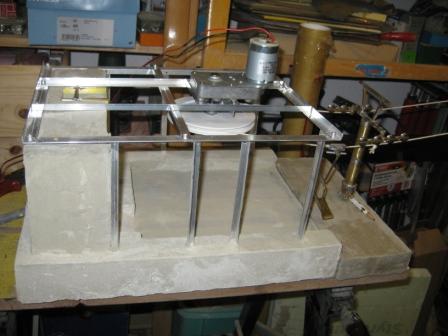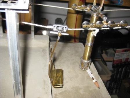 Abgesehen davon das die Robas der Niederhaltestütze bei der endgültigen Aufstellung auf gleiche Höhe wie die Umlenkscheibe kommen müssen würd ich sicherheitshalber aber noch Stützrollen oder besser Zweierrobas direkt vor der Antriebsumlenkscheibe machen; sonst bestünde bei zu geringer Seilspannung mit den schwereren Messinggehängen die Gefahr das das Seil rausspringt.