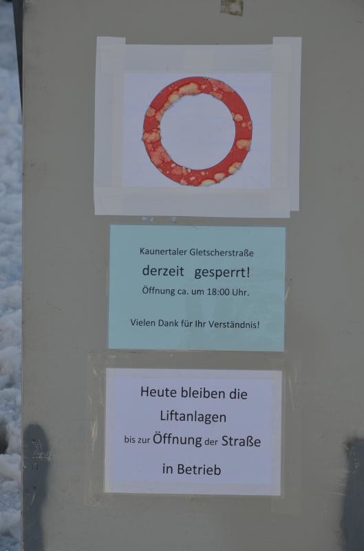 Ab Mittag war die Zufahrtsstraße gesperrt. Das war auch nötig, denn beim Runterfahren nach der Wiederöffnung um ca. 18:30 Uhr ging es durch mehrer große Lawinenabgänge, u.a. im Bereich Ende des Gepatsch-Stausees, in die mit schwerem Gerät Gassen für die Straße gegraben wurden. Weiterfahrt dann auf der Stausee-Westseite über den unteren Ausweichweg, Straße oben auch mehrfach verschüttet. Zwei weitere Lawinen auf die W-seitige Straße vorne am Staudamm.