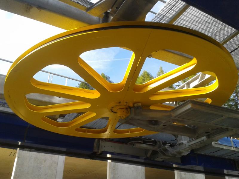 Ich glaube das Seil führt durch die Mittelstation. Es ist bis jetzt nur eine Seilscheibe vorhanden und diese ist keine doppelte wie z.B in Kitzbühel.