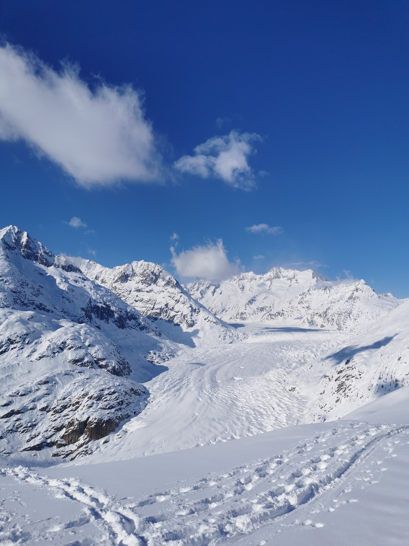 + Sehr schöne Aussicheten bis Mt. Blanc, Weisshorn, Matterhorn und natürlich Aletschgletscher inkl. Tiefblicke ins Tal