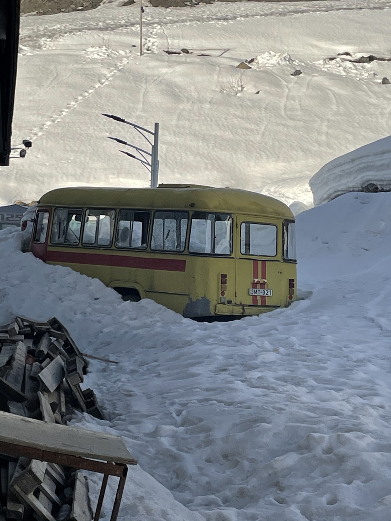 Morgen mal sehen wie es mir geht ...vielleicht doch noch einmal Snowboarden bevor es weiter geht....aber hier mal ein ganz besonderer Bus zum Transfer