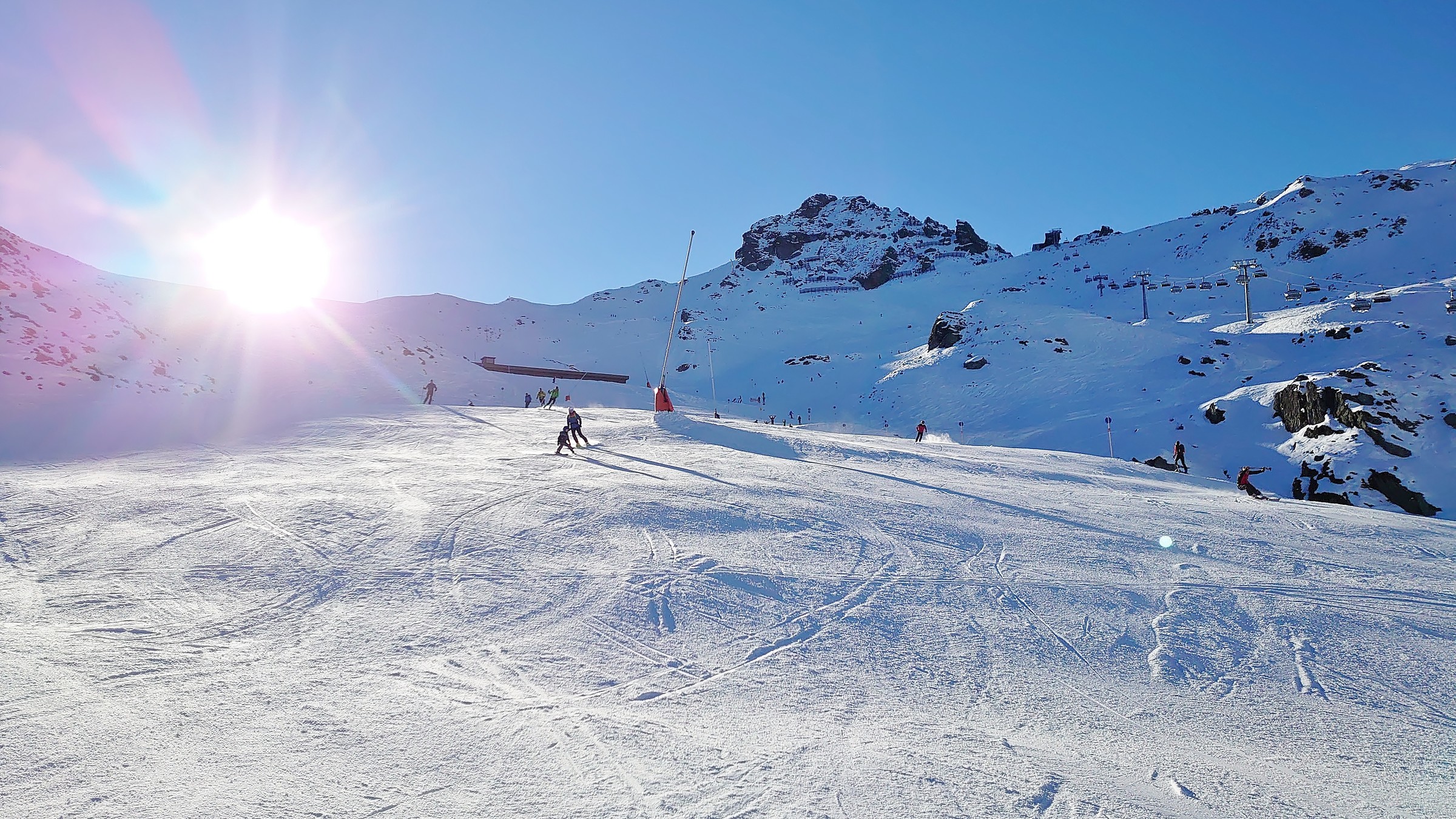 Heute (Sonntag) war herrliches Wetter, die Temperaturen rund um den Gefrierpunkt (in der Sonne gefühlt wärmer, aber die (geöffneten) Pisten liegen ja eher schattig). Es waren vermutlich ausnahmslos Tagesgäste da aus Österreich und Deutschland. Zwischen 10h und 12h war es gut gefüllt (aber ohne längere Wartezeiten), davor und danach war es deutlich leerer (wir hatten zu zweit vor 10h und nach 12h immer eine 8er Gondel für uns allein).