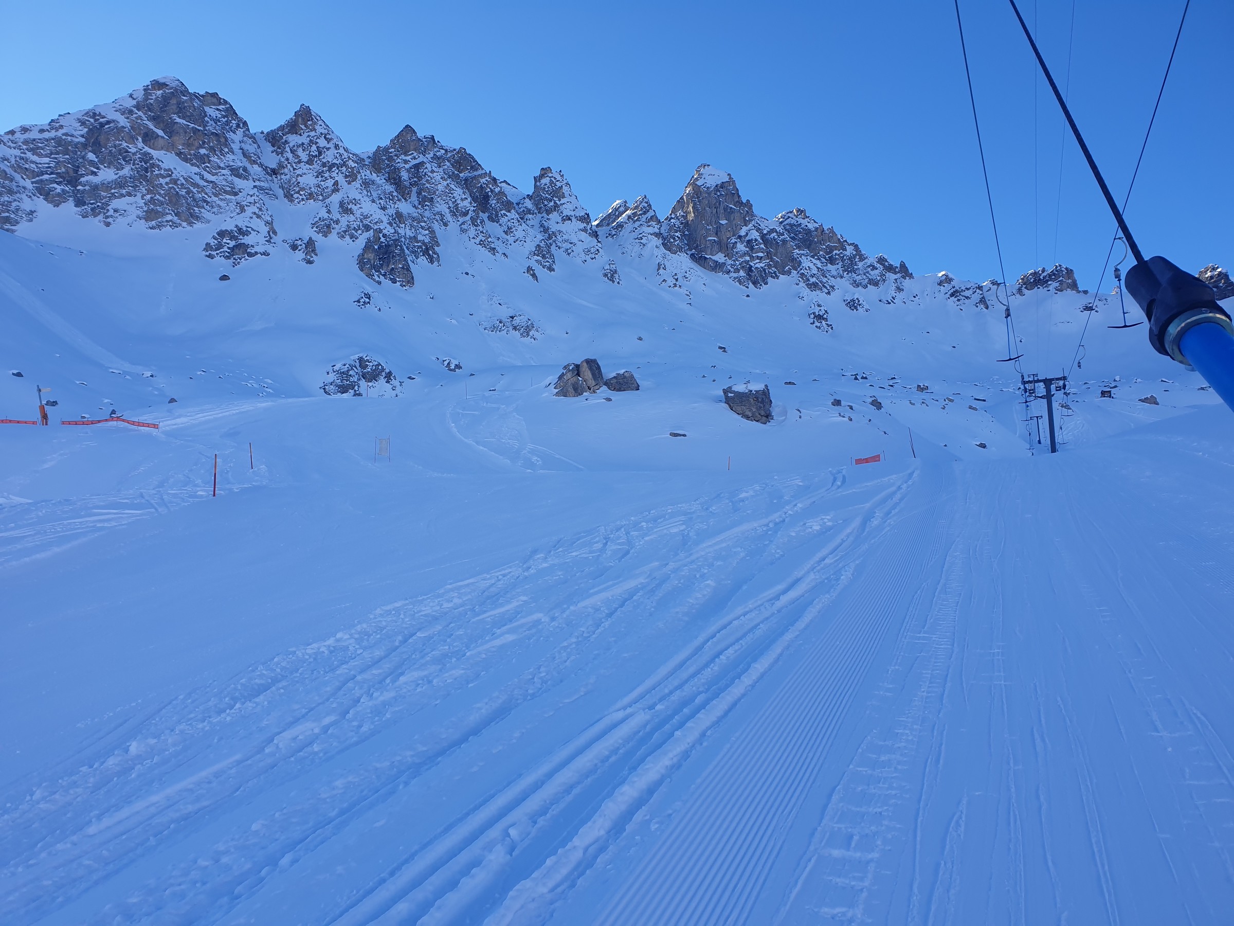 Alle Pisten außer Plan-Plauté waren frisch präpariert. Der Schnee auf den Pisten war sehr gut, am Morgen leicht pulvrig. Am Nachmittag wurde es härter (manchmal sogar vereist, besonders auf Artzinol und La Nouva), aber immer noch okay.