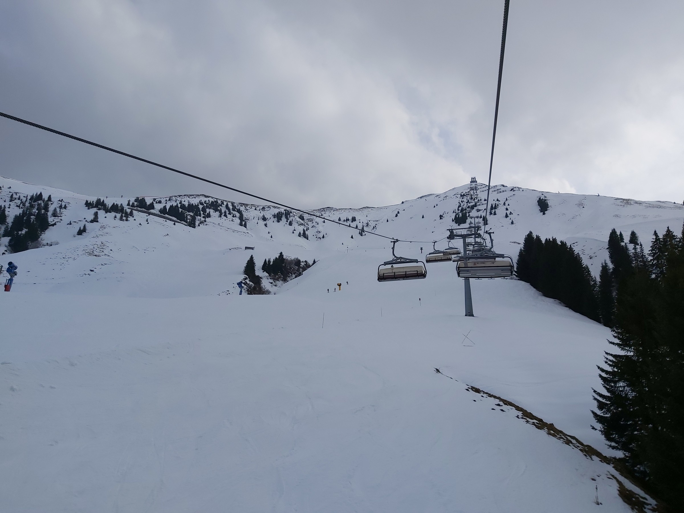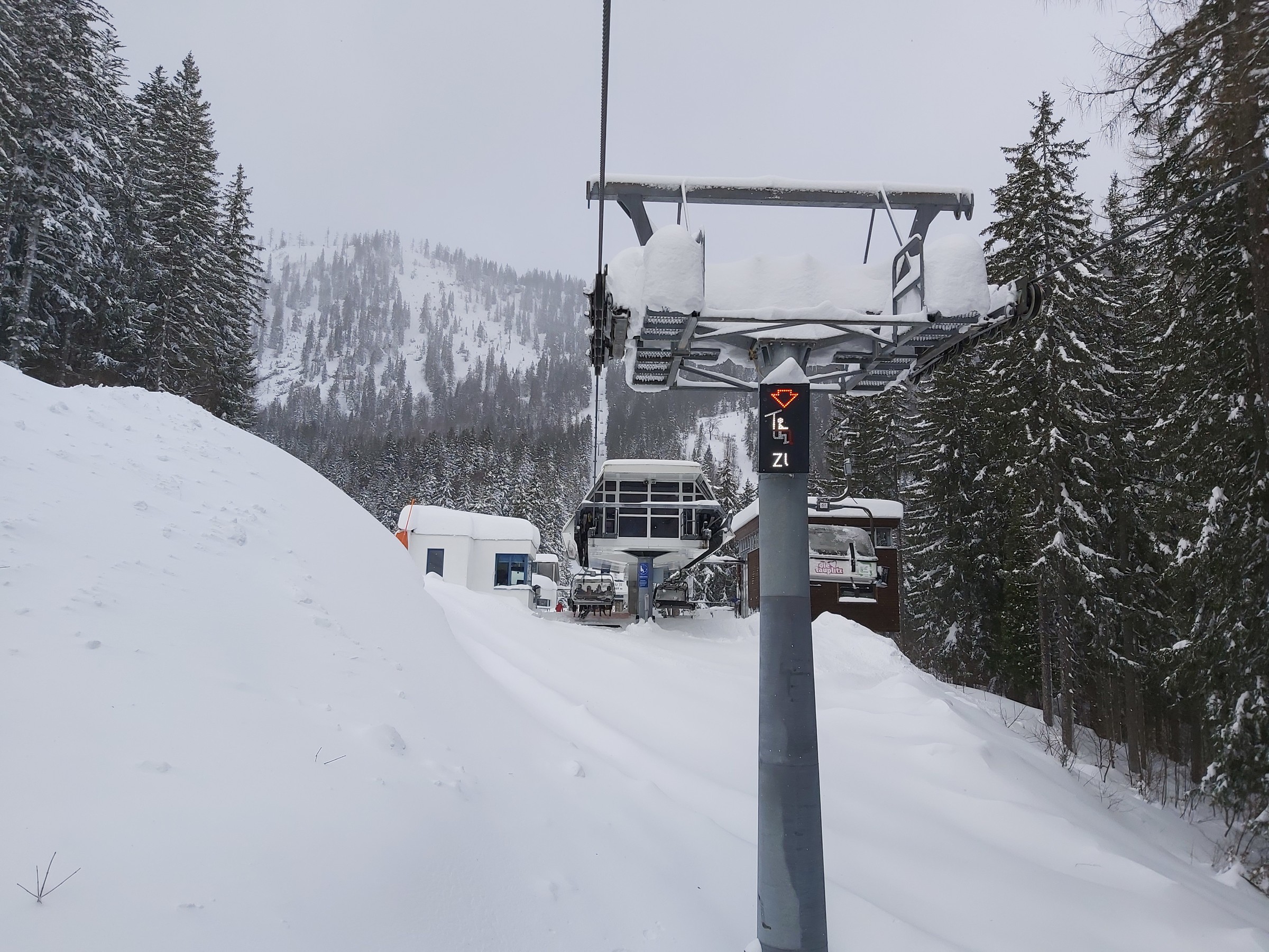 Nach langem Warten machten endlich die Sesselbahnen auf. Kurz nach Mittag an der Talstation. Schnee nun mehr als genug, doch wie schnell wird es verspurt sein und wie hoch regnete es rauf?