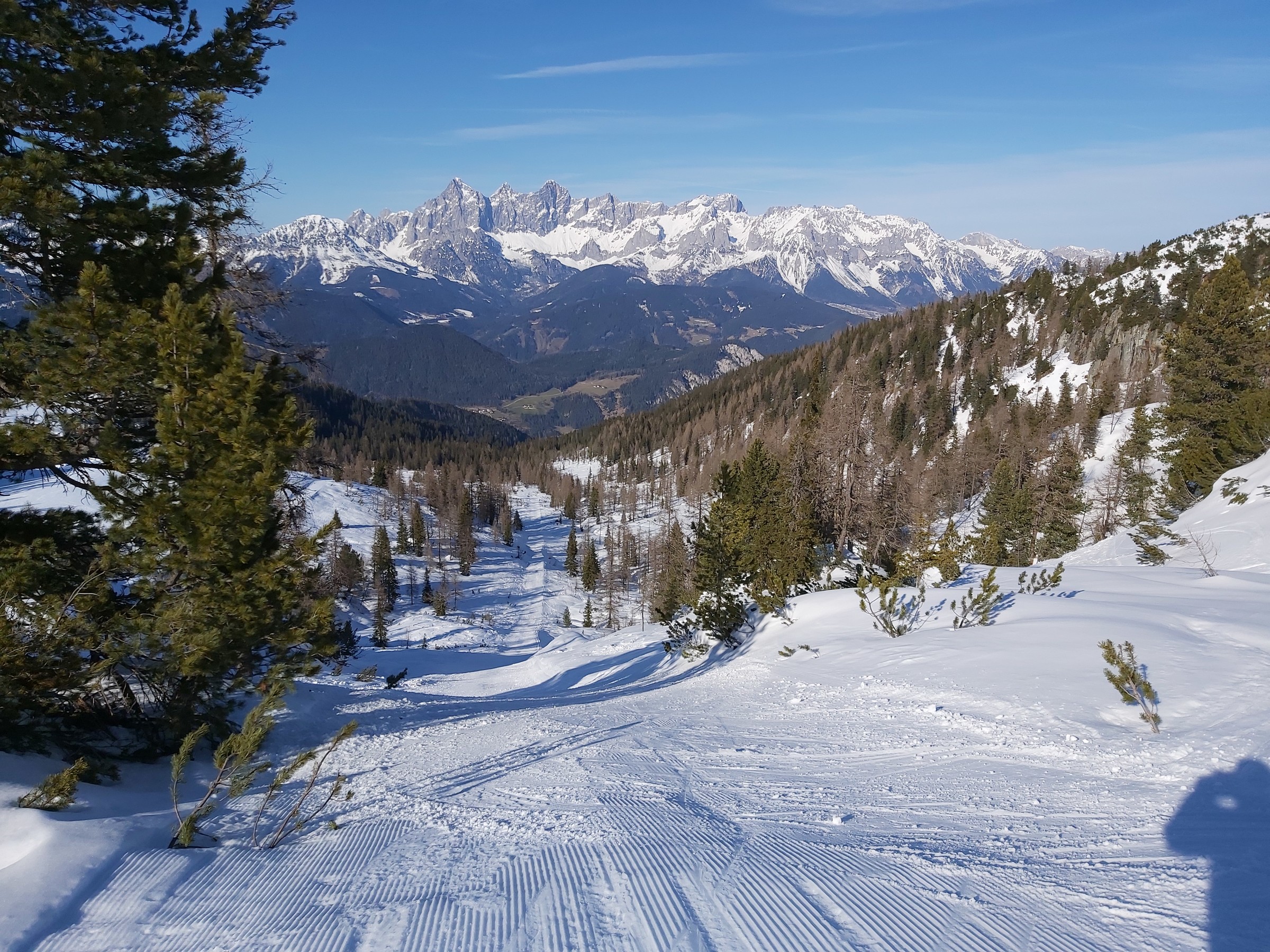 Freitag waren wir am Großen Bärneck im Donnersbachtal, da kann man von Donnersbachwald auf der planierten Rodelbahn zum bzw. vom Mörsbachwirt die Problemzone überwinden, oben ist dann genug Schnee gewesen.