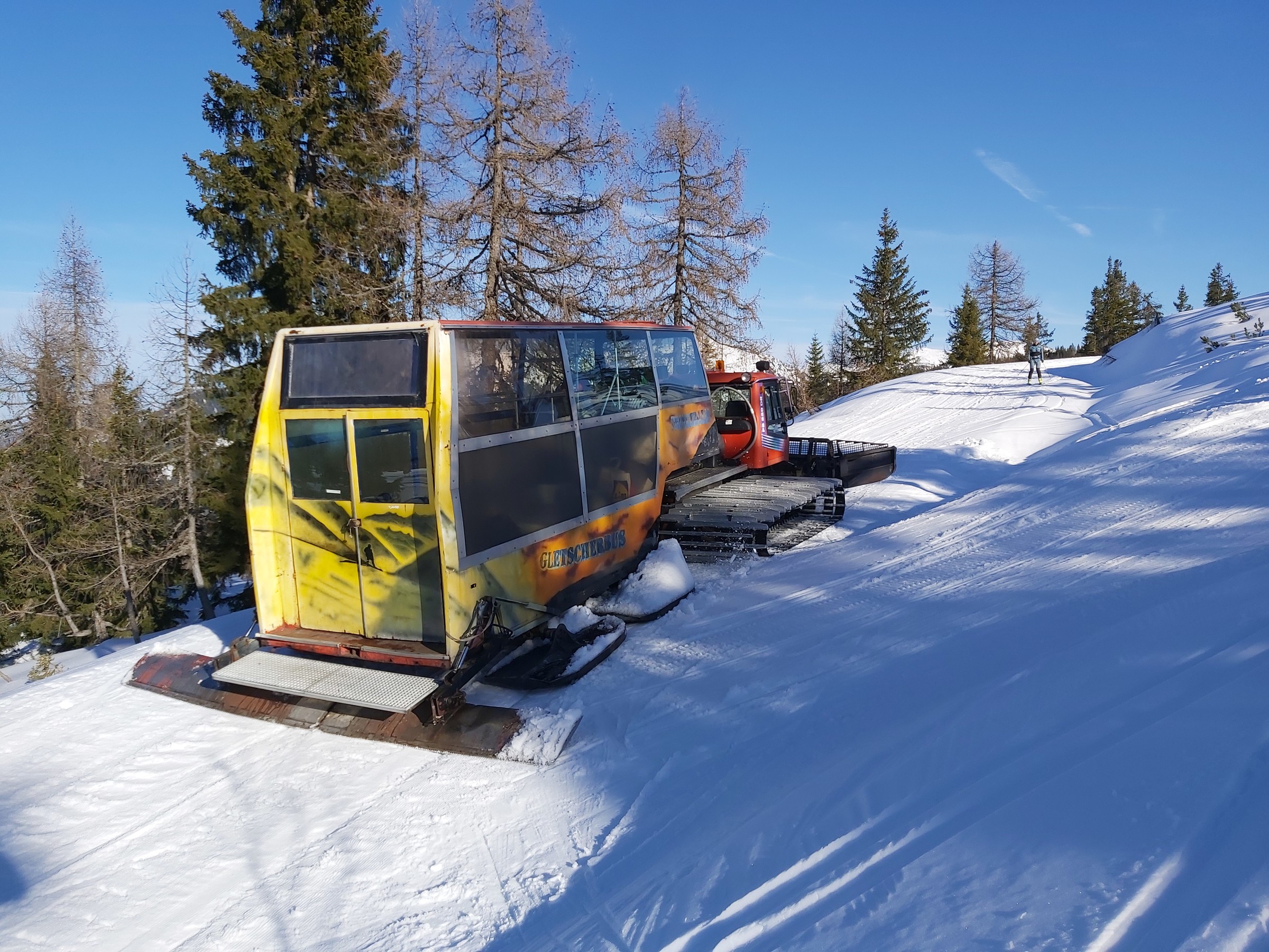 Für das Wochenende sind wieder ein paar Tage prädestiniert zum Skifahren. Im Gelände finde ich es jetzt nicht mehr am spannendsten nach den letzten Tagen und so musste der Atomic vor einen größeren Tag noch getestet werden. Seit dem "Zwischenfall" wo ich den Ski am selben Tag nach dem Service selber servicierte bin ich ihn nicht mehr gefahren. Also ab nach Liezen schnell was essen und gleich weiter nach Weißenbach. Kurzer, dennoch anspruchsvoller Hang wo man auch auf Tempo kommt. Hier wird gefahren wenn genug Schnee liegt. Präpariert wurde leider seit Tagen nicht mehr und so war es Teils sehr uneben und schlagig. Der Ski auf den harten Naturschnee extremst griffig. Fast schon zu viel des guten und werde daher den Handschleifer mitnehmen für den nächsten Tag. Aber eben nicht aussagekräftig durch die unebene Piste. Der Schlepper müsste noch nicht im Forum bildlich festgehalten worden sein. Ich mache es jetzt dennoch kurz, da es morgen Zeitig aber noch nicht genau wohin losgehen soll. Gesehen werden ihn schon viele haben, besonders die die nach Schladming fahren.