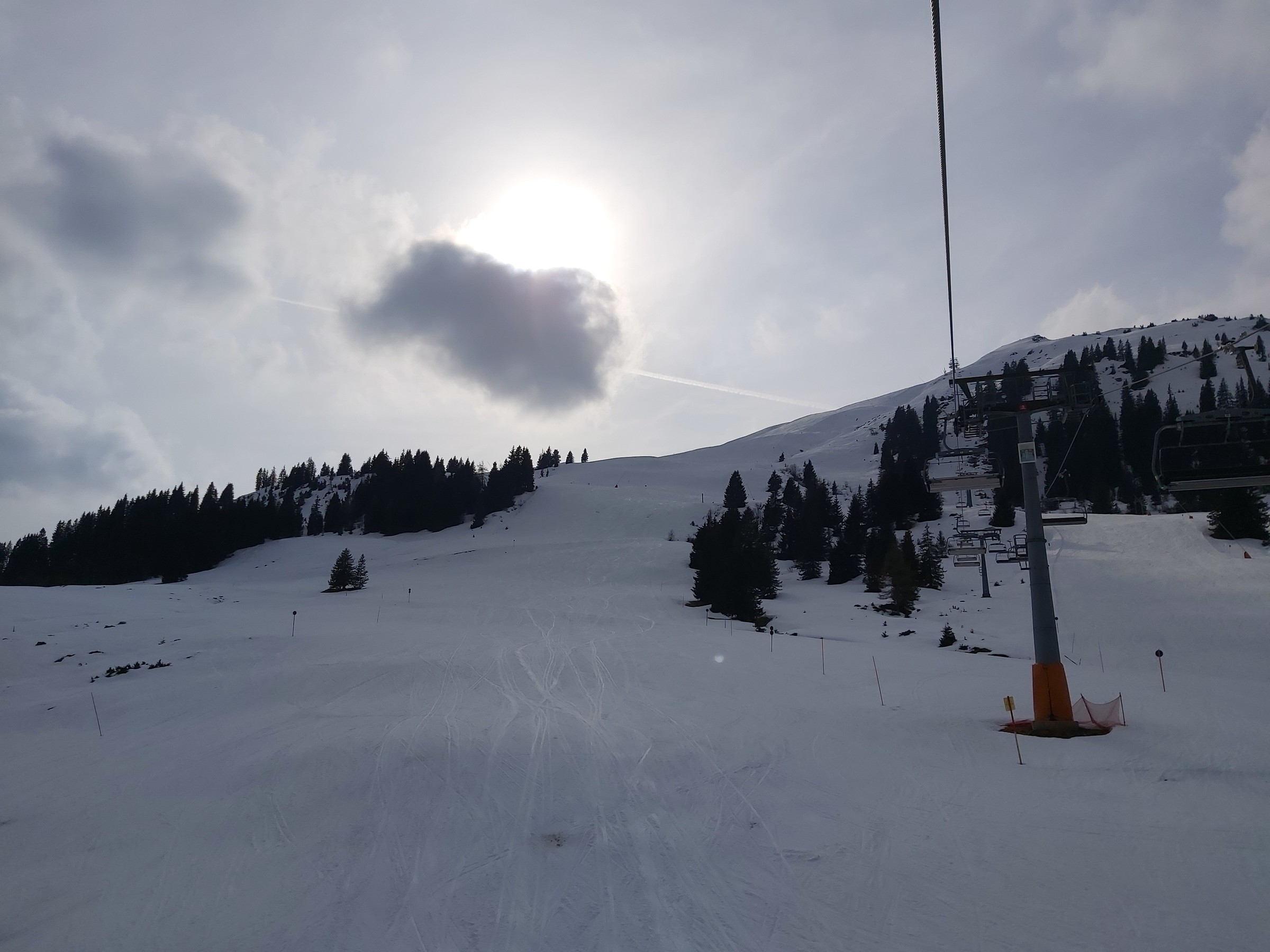 Ne im Ernst war ein schöner Tag. Sonnig mit mal kurz etwas dünneren Wolken. Angenehm warm und die Pisten hielten gut. Ein Gebiet genau richtig für die späte Saison.