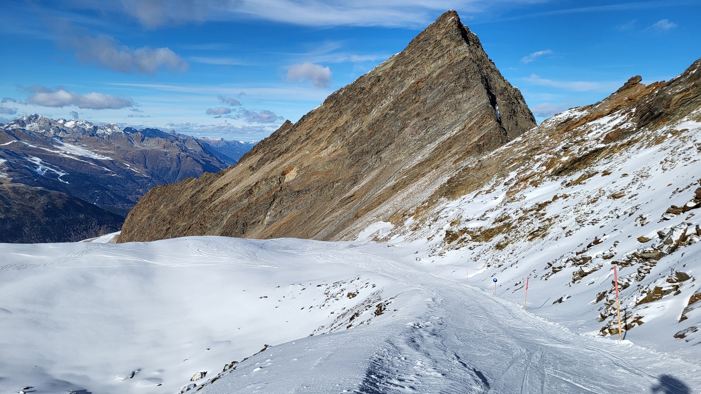 In Hochgurgl hingegen gleichmäßigerer Schnee als gestern, da die Beschneiungsergebnisse nun großteils präpariert waren. Dadurch weniger abgerutscht und etwas weniger Steine als gestern.