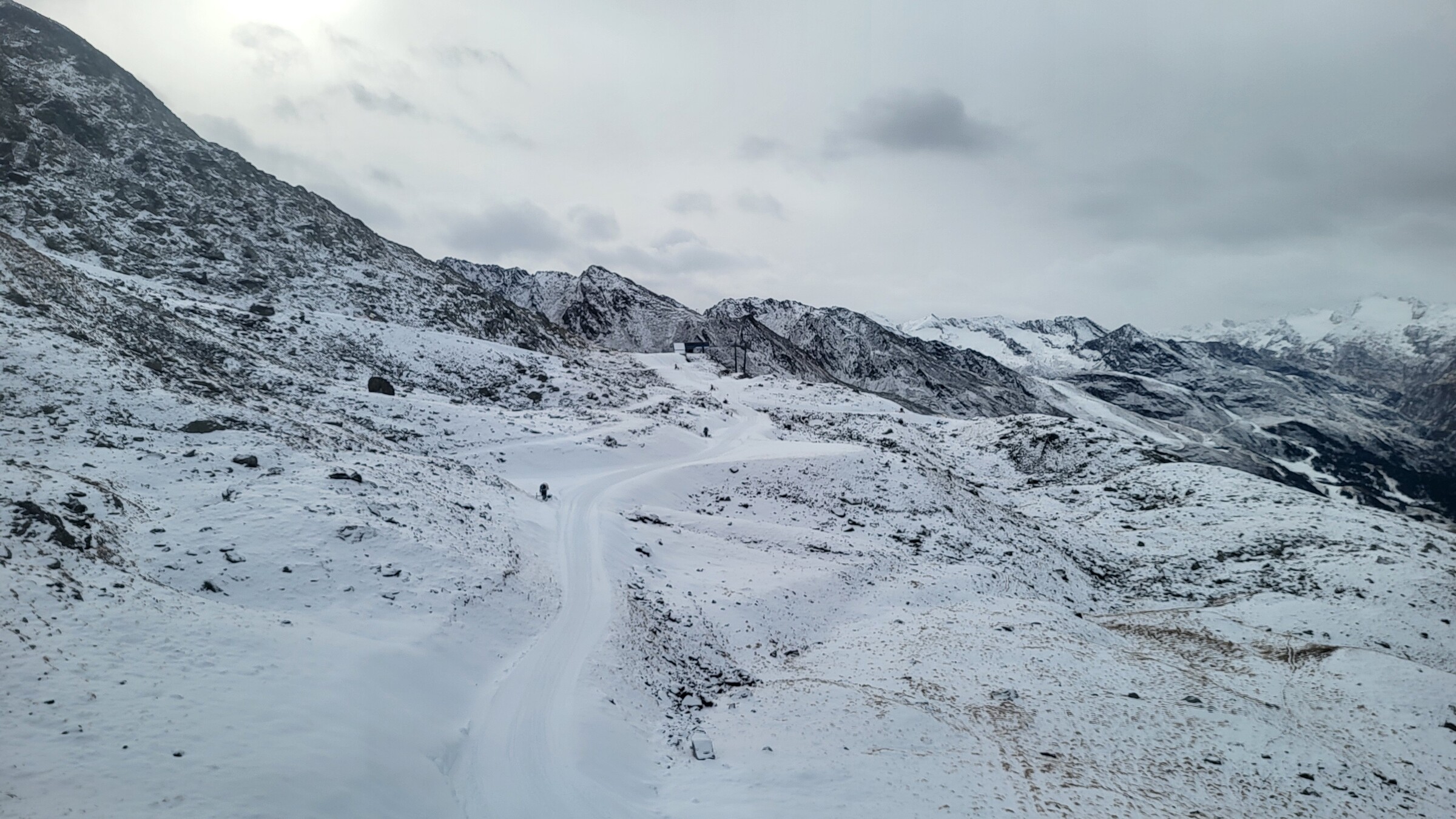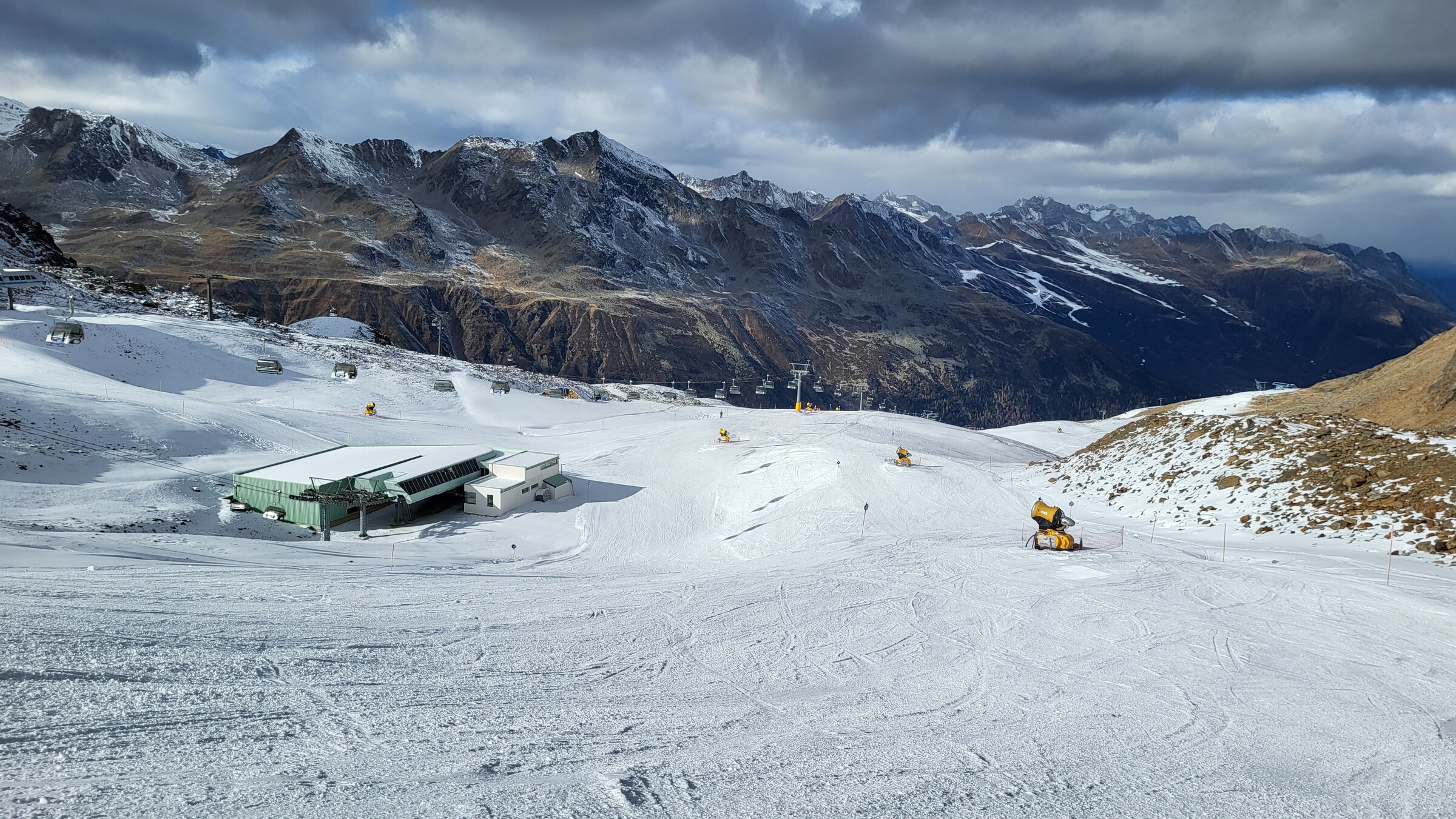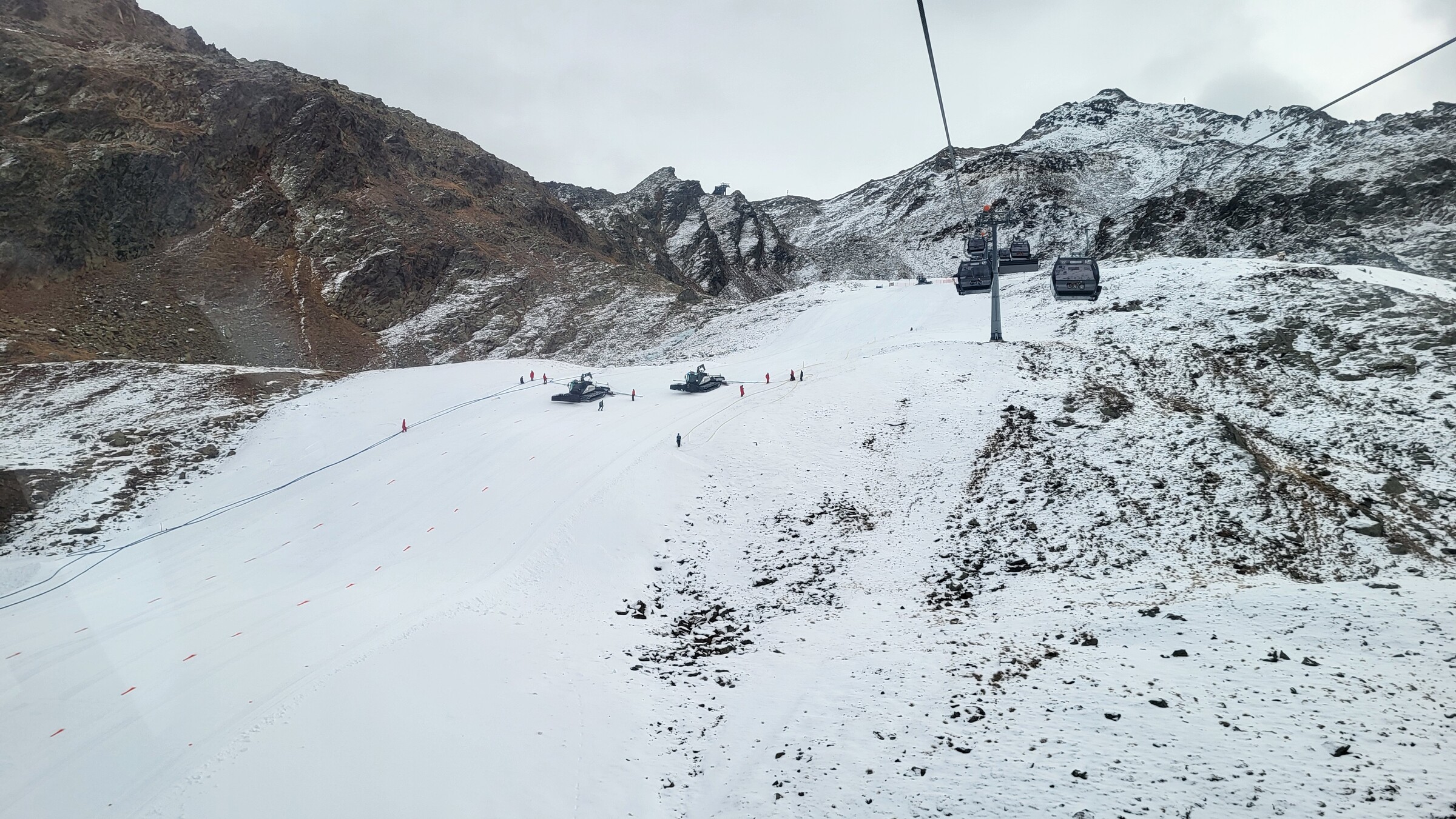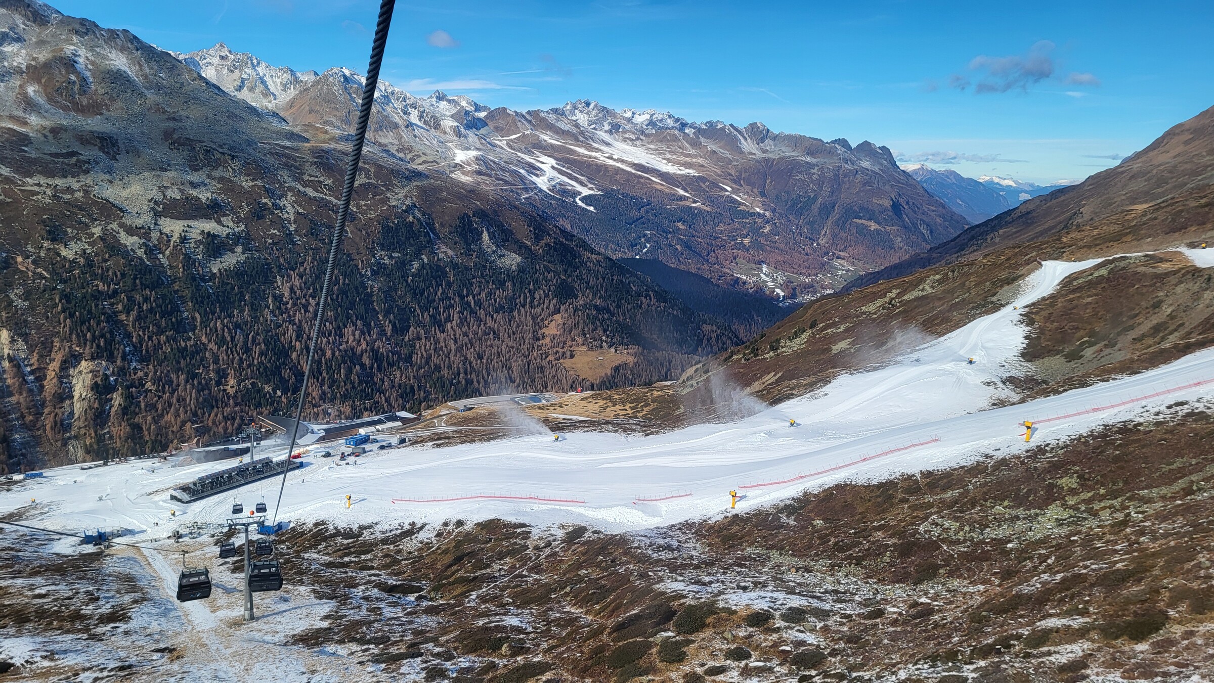 Die Talabfahrt von Hochgurgl war bereits heute geöffnet, aber eher mittelmäßig präpariert. Auch die Wasserspeicher sehen ziemlich leer aus.