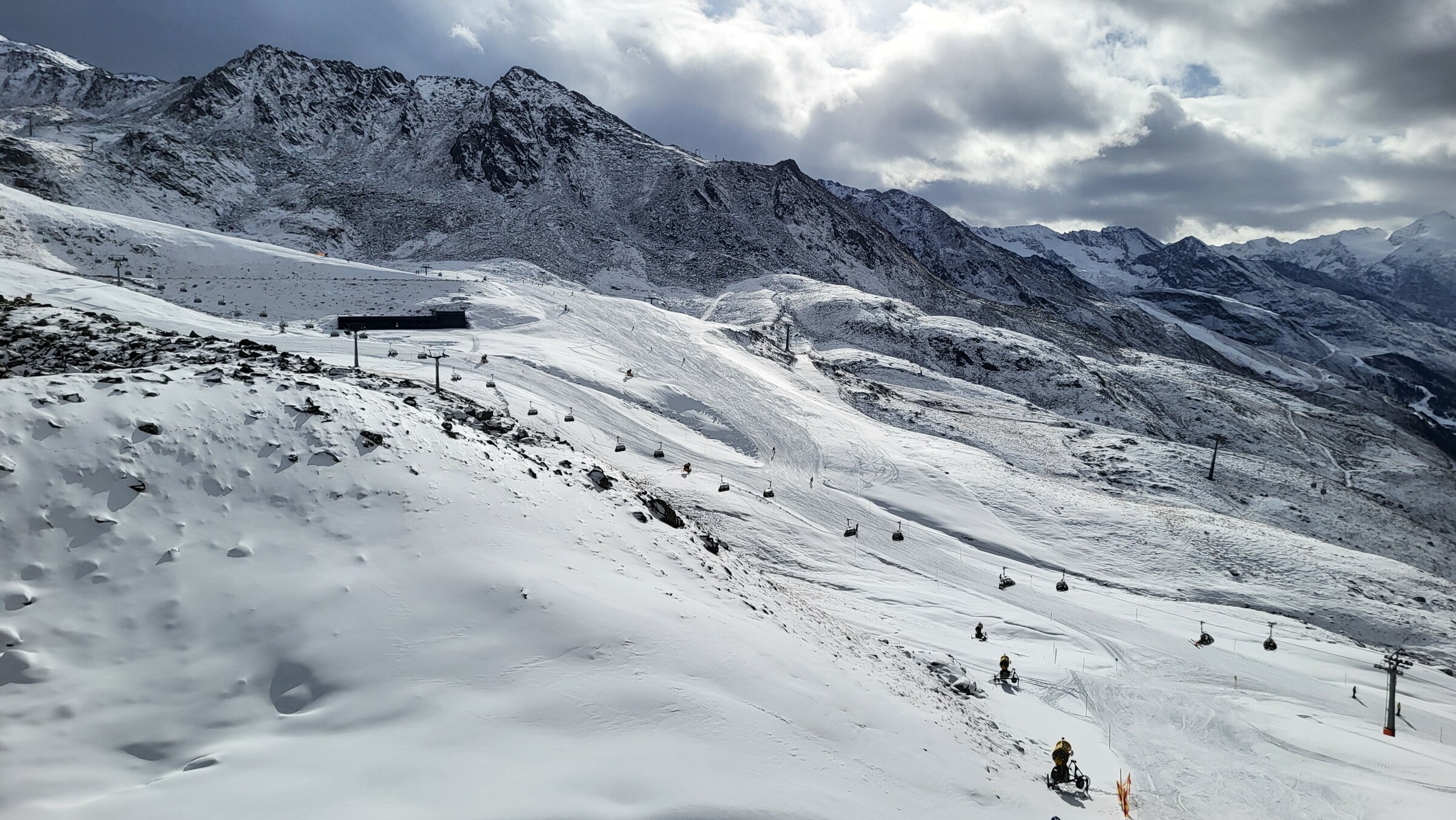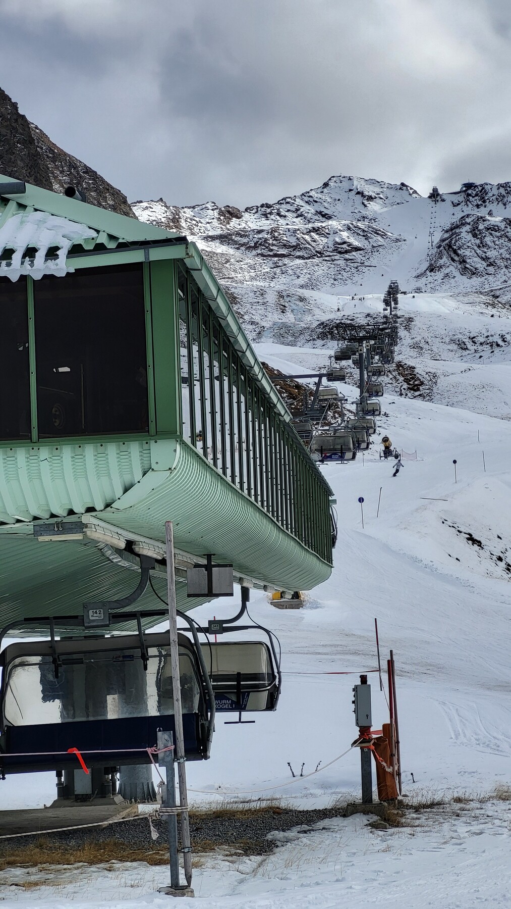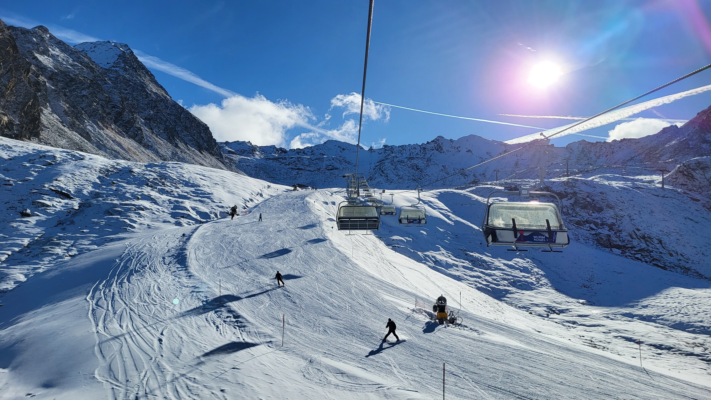 Ich war heute bis 13 Uhr nochmal in Hochgurgl unterwegs. Obergurgl habe ich wieder ausgelassen. Zwar sind nun die 12 und die Verbindungsbahn offen, aber die 6 nur bis zur Mittelstation Hohe Mut und noch nicht bis ins Tal. Und die Schneequalität frisch eröffneter Kunstschneepisten ist ja häufig auch nicht so gut.