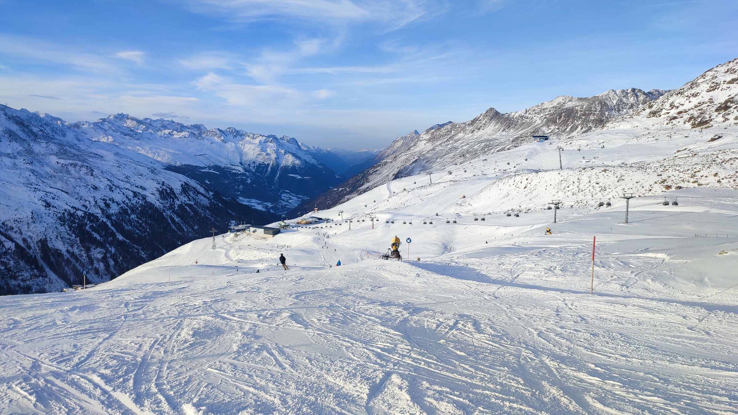 Ich bin eigentlich nicht scharf auf die Vorsaison, da sich viele Leute auf wenigen Pisten drängen. Aber ich hab schon länger festgelegt; wenn ich mal im Herbst Skiurlaub mache, dann Ende Nov. ins Ötztal.