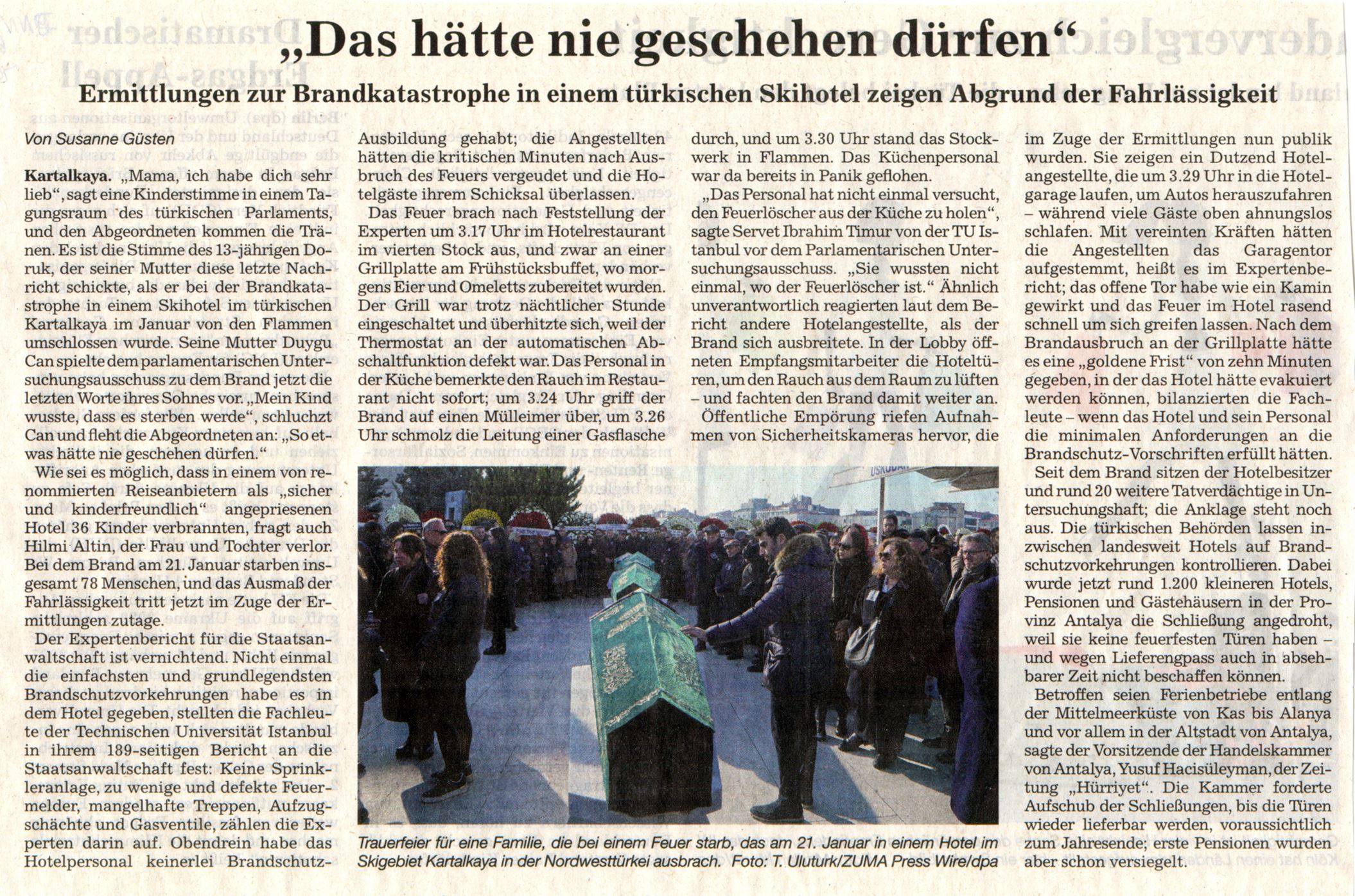 Nachlese zum Hotelbrand in Kartalkaya mit insgesamt 78 Opfern nach Abschluss des Expertenberichts für die Staatsanwaltschaft: Bezüglich Brandschutz ein "Abgrund der Fahrlässigkeit".