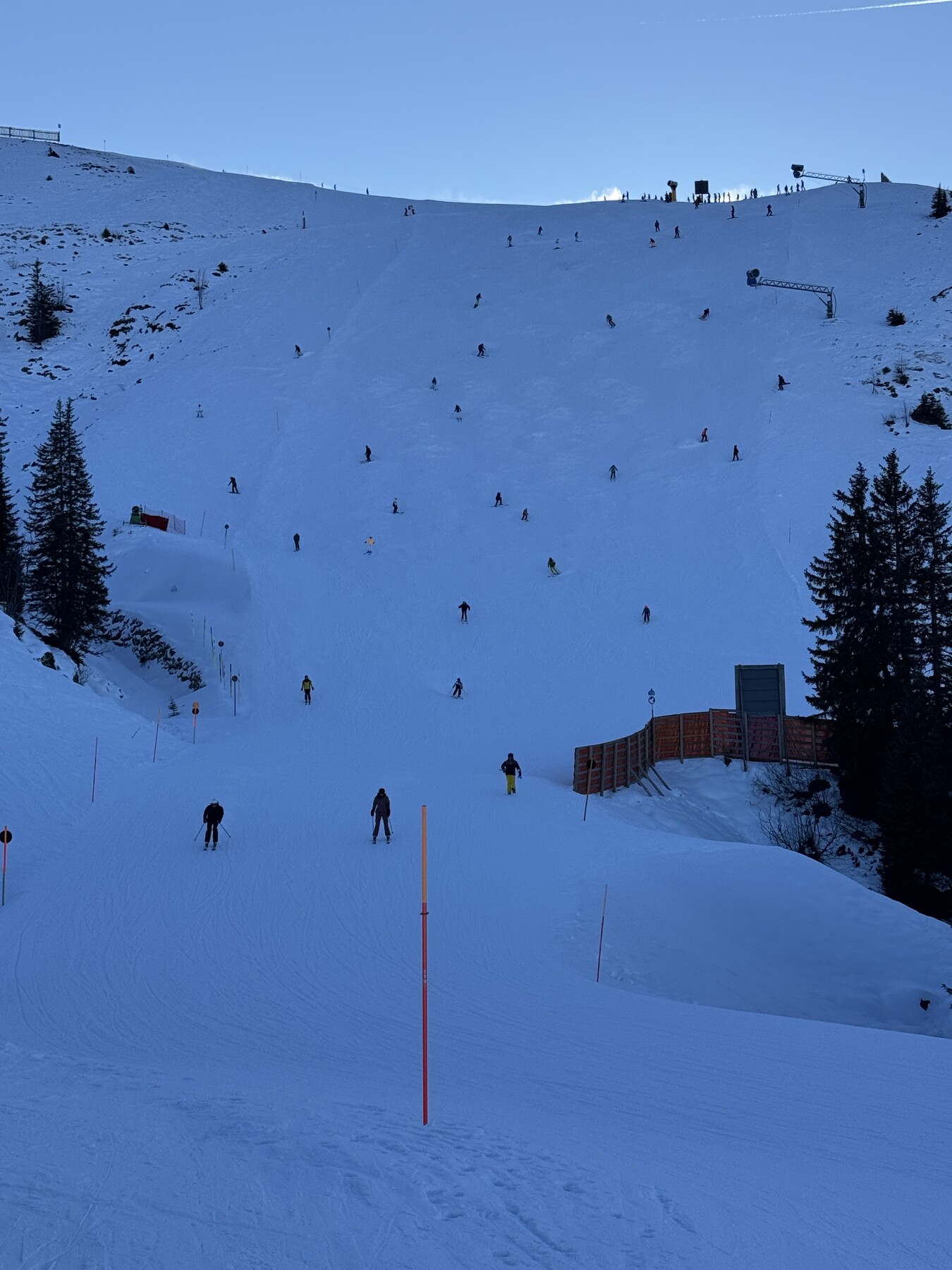 Im Kerngebiet sieht man aber auch viele Kanonen, dennoch ist es dort aktuell genauso eisig. Die späte Beschneiung der Fleck liegt ja meines Wissens an mangelnden Pumpkapazitäten in dem Sektor, sodass immer erst der Rest drumherum beschneit wird. Da gibts aber auch Pläne für eine Entlastung.
