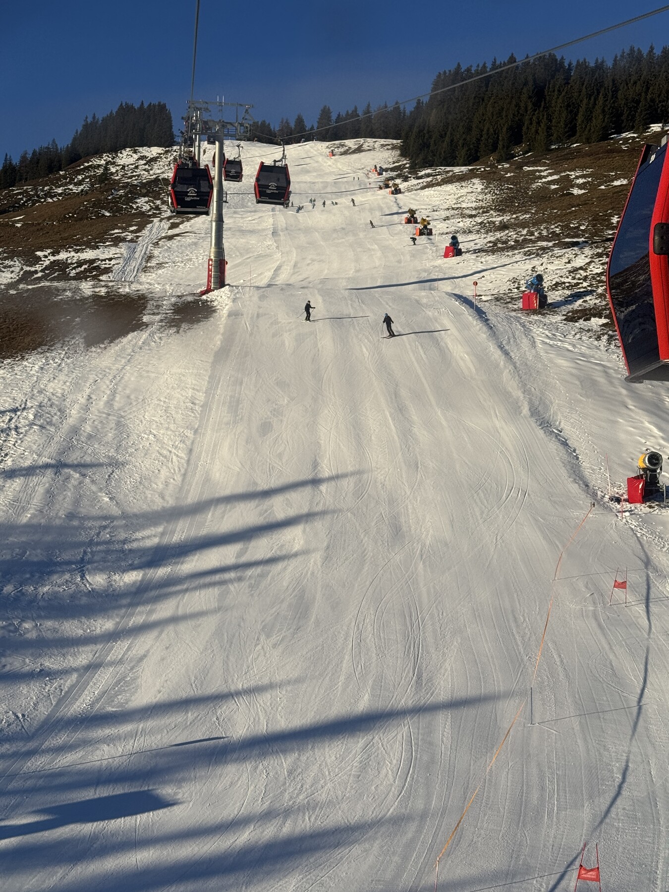 Viele Bilder gibts aufgrund der Temperaturen nicht, aber aus der Gondel konnte ich ein paar Schnappschüsse der Vereisungs-Erfolge, äh ich meine natürlich Beschneiungs-Erfolge an der Fleckalm-Abfahrt machen: