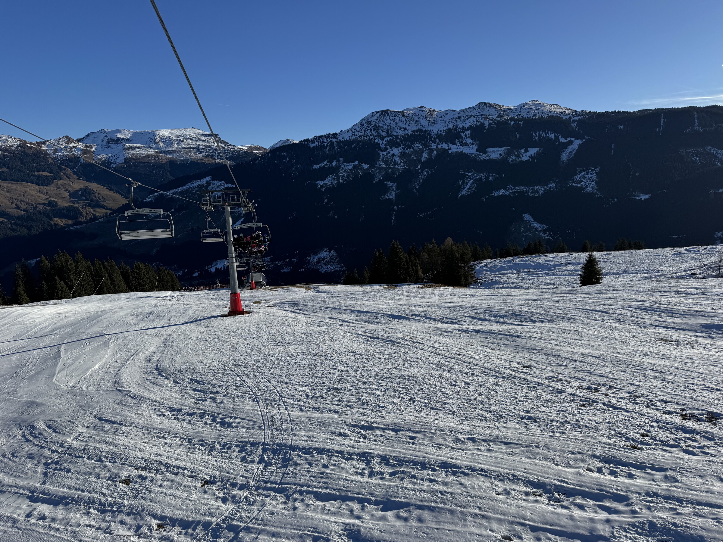 Wir fuhren dann noch 2 Wiederholungen am Bärenbad 1, da ging’s gut. Am Talsen um 14 Uhr war niemand, ich dachte, ich bin im falschen Film. Rüber mit der 3S, dann Brunn (schon sehr abgerutscht). Dann am Nachmittag noch 5 Fahrten in der Sonne an der Ochsalm, das war gut, aber teils zu viele Leute.