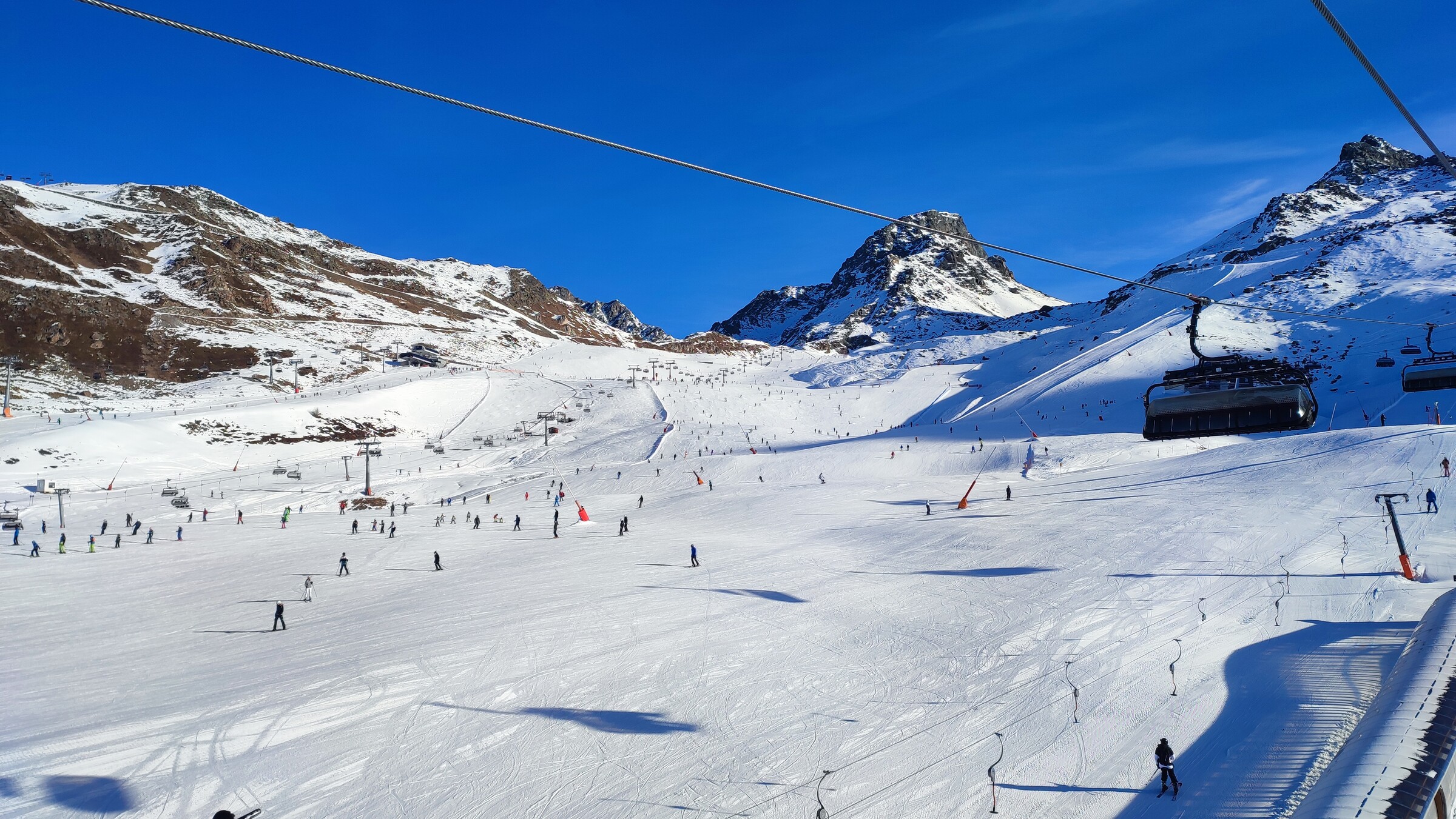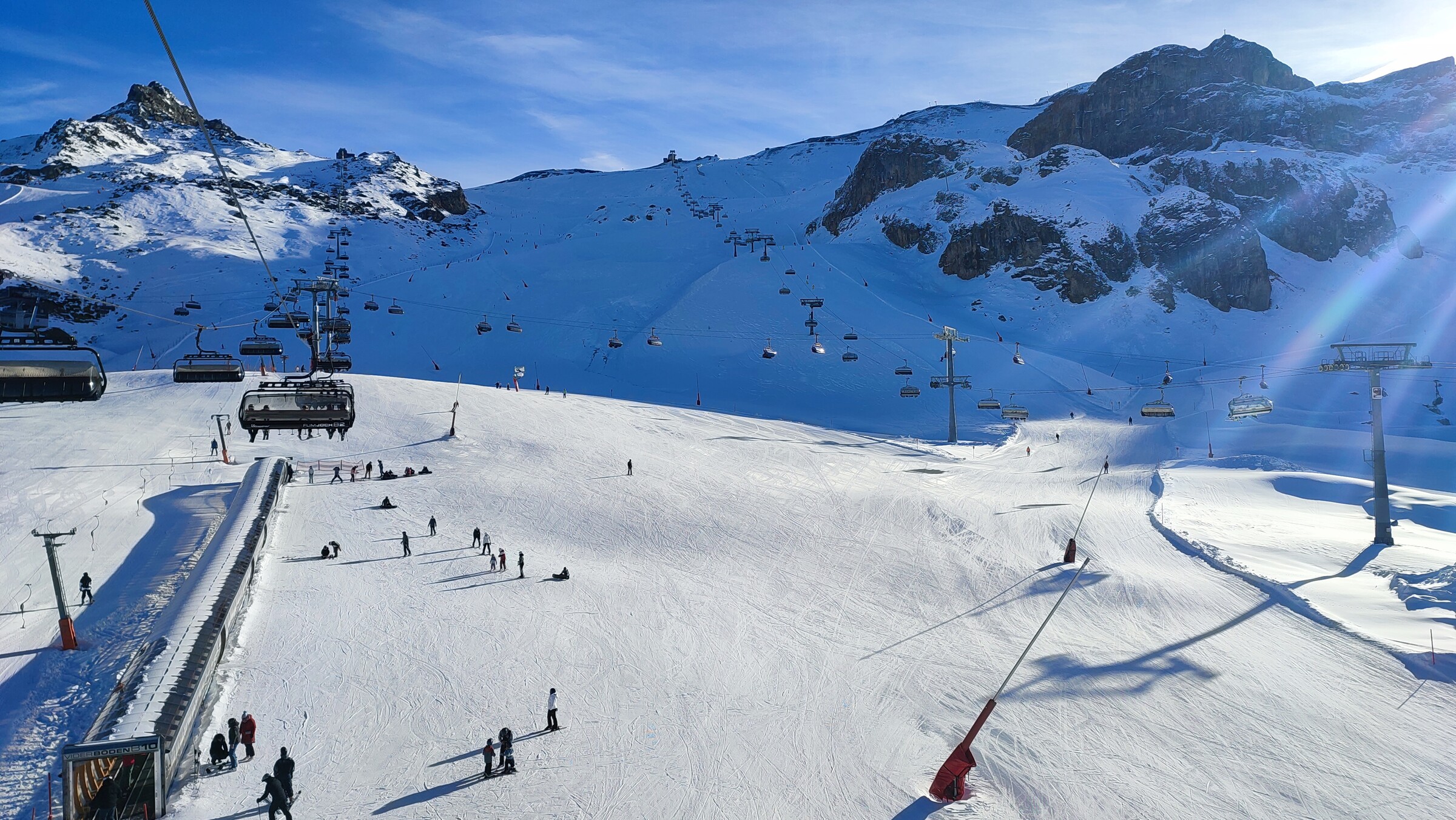 Kurzes Update von Heute: Stahlblauer Himmel, Painkopfbahn Talstation sagte -16 Grad um 11 Uhr und da war Sonne im Höllboden. Auf Schweizer Seite stiegen frühs Flimsattel- und Greitspitzbahn recht früh aus, auf Ischgl Seite Höllboden Mittags. Die Lifte gingen dann aber wieder in Betrieb, führte aber zu einigen Schlangen. Ansonsten musste man nie viel anstehen