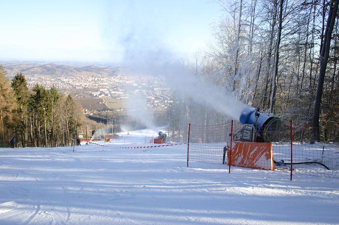 Schneelage: in Maribor etwa 20, auf dem Pohorje 40 cm Neuschnee . Wenig im Vergleich zu den Nordalpen, viel wenn man bedenkt das wir bis Ende Januar so gut wie keinen Naturschnee hatten. Vor allem aber durch die tiefen Temperaturen sehr viel Kunstschnee, und das von guter Qualität.