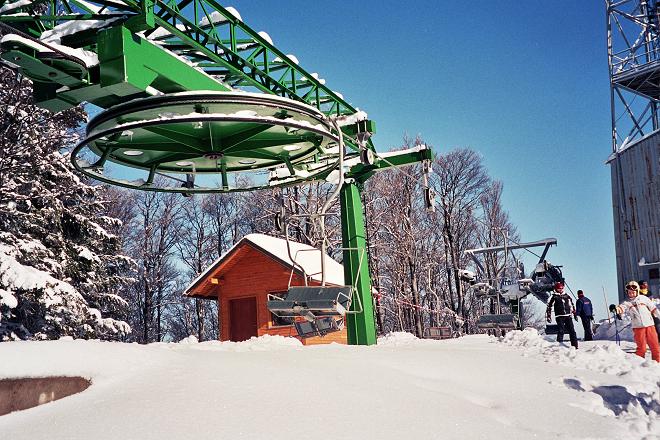 Nochmals der 'Banditenlift', links der Doppelstütze kann man die Einmündung des Ziehweges Videc - Partizanka in die rote Piste sehen.