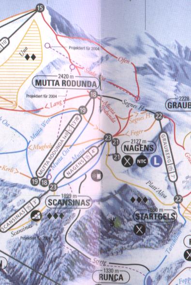 Ein Hinweis darauf ist auch der Lift, welche in der Karte quer zum neuen Sessel eingezeichnet ist. Dieser müsste ja im Bereich der Abfahrt von La Siala zur Bergstation Grauberg zu stehen kommen...