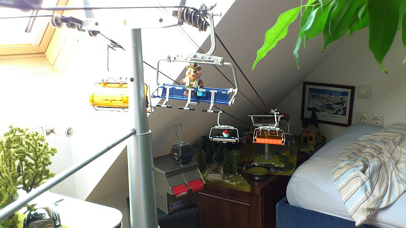 Modellaufgaben reißen nie ab. Landschaftsgestaltung MSGB Bergstation nächstes Projekt, überschneidend mit Ausbau der Bettalmhöhe und Montage des Wolf und Switzenylifts aus Petzens Fabrik, Gehängebau und Sesselmontage. Arbeit genug neben dem Beruf.