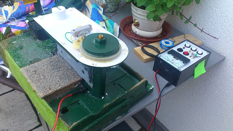 Mit der Primäreinspeisung von stabilisierten 6V mittels einstellbarem DCTrafo von Voltcraft stimmt auch die Geschwindigkeit. Das Schaltpult von Martronics arbeitet einwandfrei, wie man im Film ( gemacht mit Knopfcamerarec. mit SD Karte um 20Euronen Conrad) auch sehr gut sehen und hören kann. Die revidierte Maschinenanlage läuft schön leise und gleichmäßig. Anlage durchgelaufen von 10:30h -14:30h und 17:10h bis 00:50h. Störungsfrei!