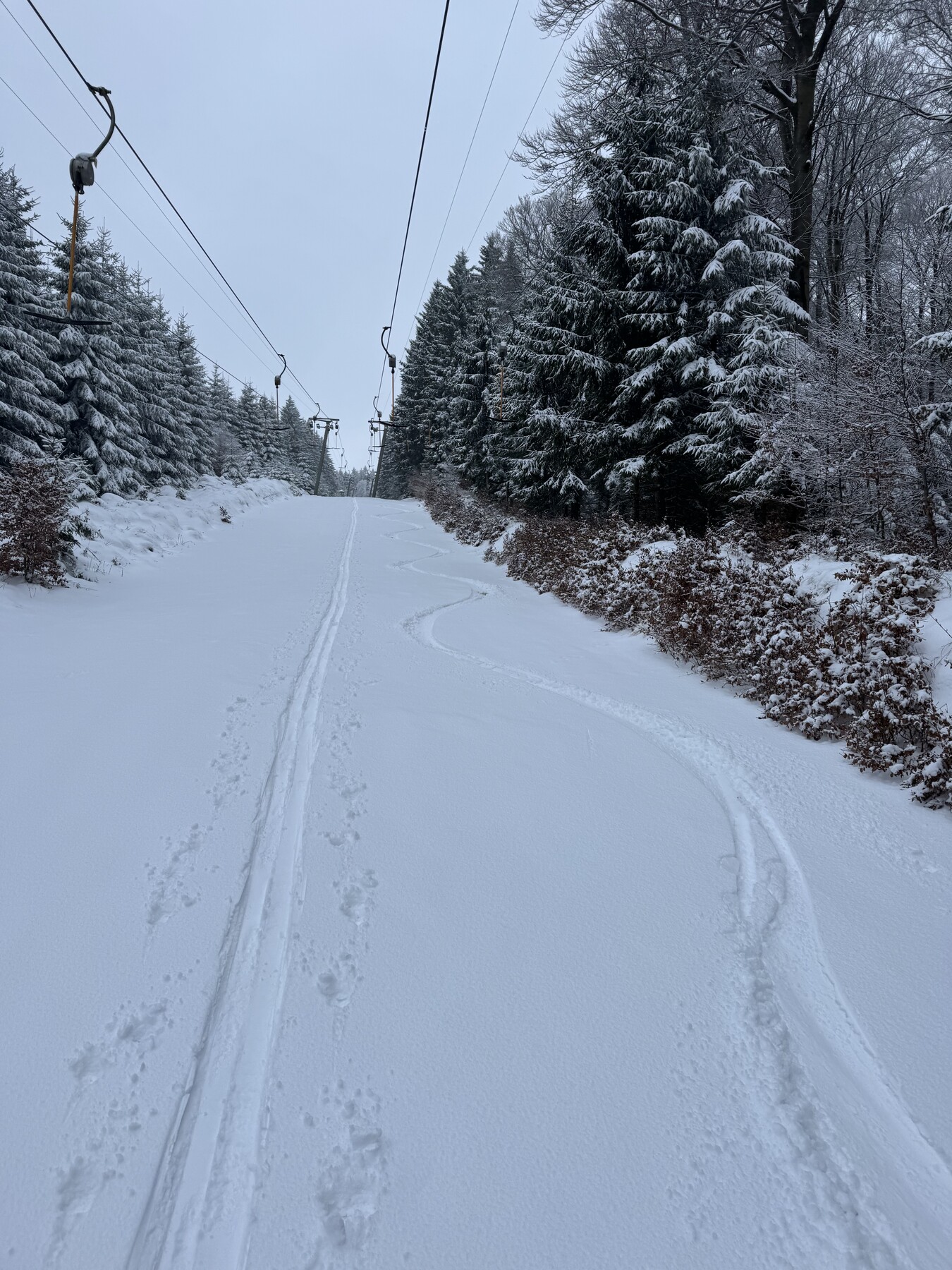 Jetzt gerade waren es schön weiche 20cm Neuschnee auf fester Unterlage. Top präpariert. Echtes Naturschneefeeling. Selten. Einzig Sonnenhang etwas unruhig. Abseits mal etwas Heidekraut, wo vorher kein Altschnee mehr lag. Stört aber nicht. Andrang nur sehr mäßig. Keine Wartezeiten. Vielleicht wegen Glätte oder Handball oder Champions League.