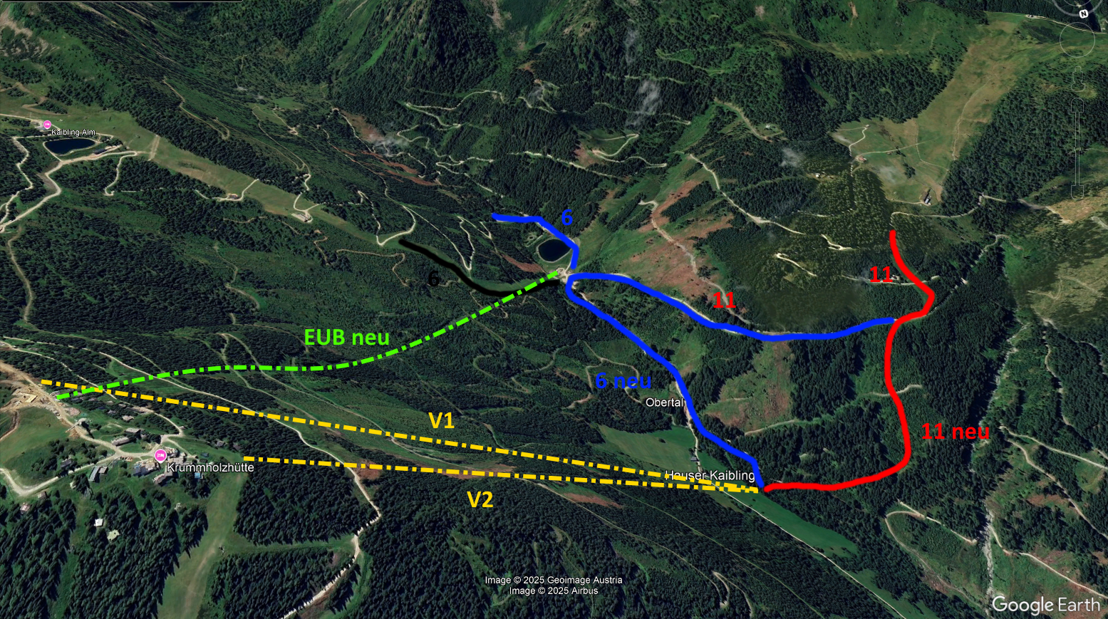 Außerdem wird die Zufahrtsstraße auch im Winter genutzt, wenn die dann deine neue Piste kreuzt bzw. die Verlängerung der blauen 6 würde, fällt das auch flach.