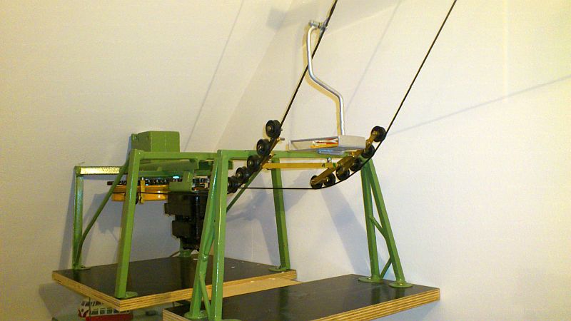 Bis auf kleine Einjustierungsarbeiten an den Portalstützen ( Höhe) läuft die Anlage wunderschön und der Antrieb grummelt leise vor sich hin. Besonders vorteilhaft ist die automatische Nachspanneinrichtung. Derzeit wird mit JC Seil ( chirurgisch gespleisst ) gefahren welches schon bei der ersten Teilstrecke der HBAB Februar 2012 im Einsatz war. Nun wartet die Anlage auf die Fertigstellung der FBMs für diese Hauptfahrtrichtung wobei die W&S Fbmwerkstätte nicht die Schnellste ist.