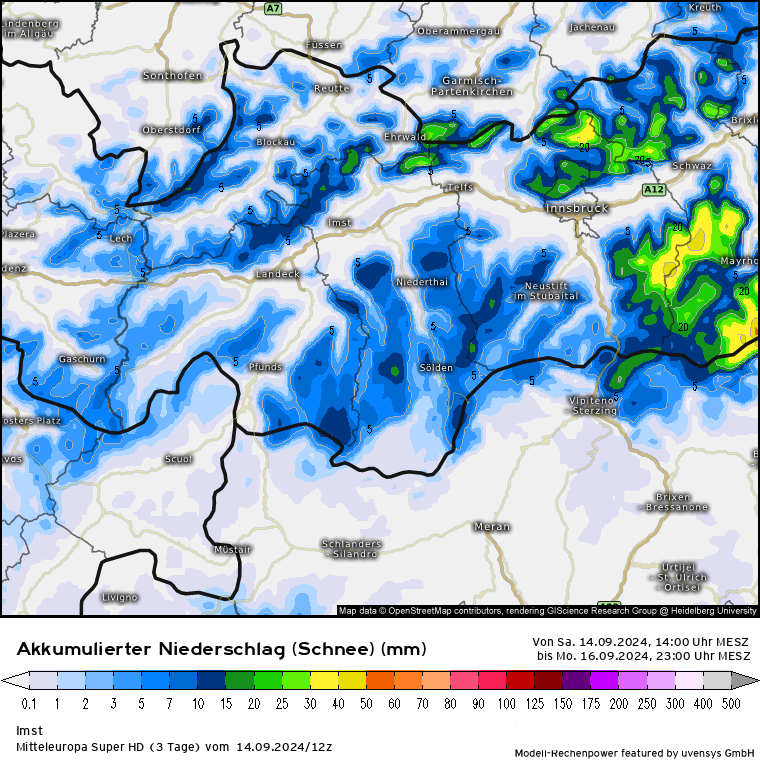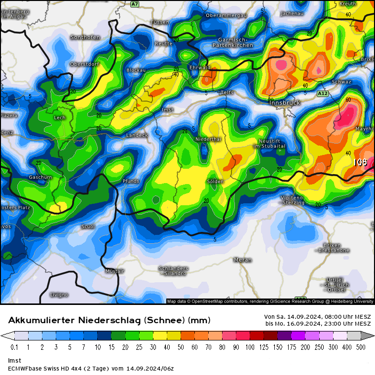 Will die Hoffnung nicht zerstören, aber bis Montag 23 Uhr werden 10 cm bis max. 15cm gerechnet, so in den meisten Modellen. Beim EZ4 ist es stark abweichend nach oben und es werden bis zu 40 cm gerechnet. Ich denke, es geht eher in die Richtung der zurückhaltenden Modelle, die die Niederschläge deutlich weiter östlich sehen.Nocki hat geschrieben: 14.09.2024 - 20:14 Das heißt der Pitztaler Gletscher geht wieder quasi leer aus?