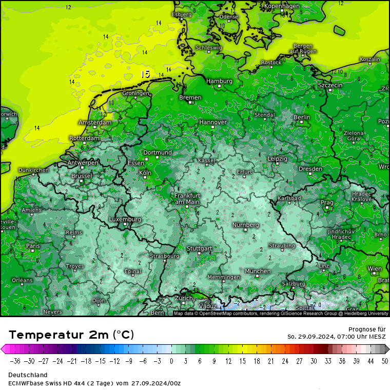 Wie gestern geschrieben wird sich das Wetter am Wochenende entwickeln. Die Nacht zum Sonntag dürfe recht kalt werden, deutlich einstellig im Mittelgebirgsraum und im Süden (Karte dazu). Bodenfrost in geschützten Muldenlagen ist nicht ausgeschlossen. Nach der kalten Nacht wird der Sonntag ganz schön und wohl einer der letzten schönen Tage in nächster Zeit. Montag kommt das angekündigte Tief und deutet auf eine herbstlich, unbeständige erste Wochenhälfte hin.