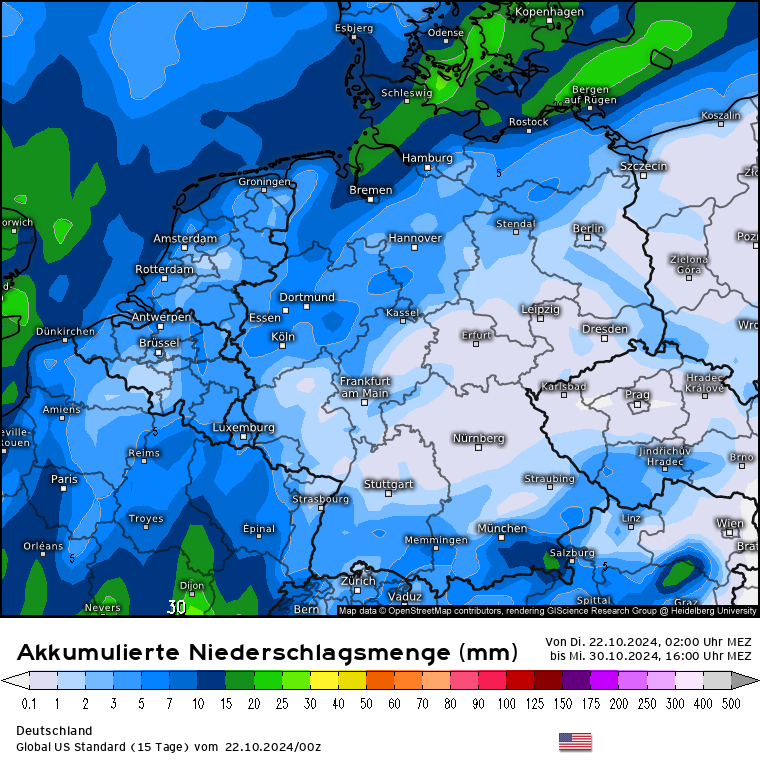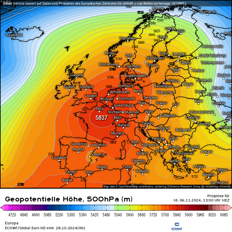 Sah in der Tat gestern noch anders aus. Da lag das Hoch weiter westlich und ließ einen Vorstoß polarer Kaltluft zu. Hab auch gerade nochmal geschaut, ECMWF & GFS haben nun ein doch recht starkes Hochdruckgebiet über Zentraleuropa. Wetterlage wäre dann so wie aktuell, ein herbstliches Hoch mit Nebel, Sonnenschein und milden Temperaturen. Beide Modelle sehen auch so gut wie keinen Niederschlag, wenn man sich die Mengen von heute bis nächste Woche Mittwoch anschaut: ECMWF bzw. GFS.