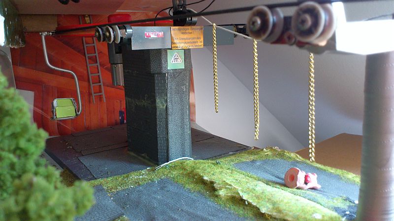 Anbei einige Bilder vom heutigen Betriebstag - gestern noch Revision und Schmierdienst auf I+II . Meine Gattin Gabriele war gestern das erste Mal Maschinistin an der MSGB und ist hervorragend gefahren als ich auf der Leiter die Streckenrevision gemacht habe. Gehängeversetzen , Fingerkontrolle Seil......Dabei ist es durch meine Hand fast zu einer Seilentgleisung an der Maschinenstation gekommen,aber mit Plastikbeisser und durch zarte Hand von Gabi an der Martronicssteuerung ist alles gut gegangen. Man muß dazu sagen durch die fixe Stationsverbauung ist alles nur durch Leiter erreichbar und ohne Assistenz wärs nicht so einfach machbar....