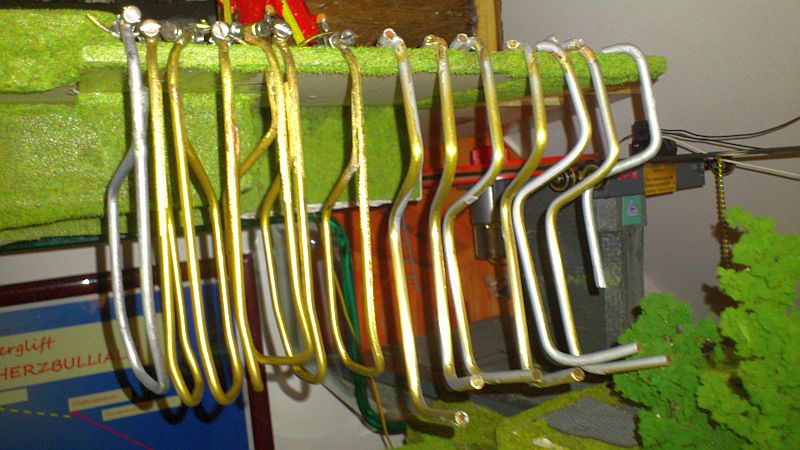 Die Herzbullialmbahnen haben von gestern auf heute eine Nachtschicht hingelegt um die Umstellung auf ESL mit Steurer FBMs fertigzustellen. Anschliessend hieß es Klemmen optimieren da es anfangs zu massiven Betriebsstörungen durch nicht optimalen Klemmenlauf gekommen ist. Langfristig werden die Streckenstützen auf Gitterfachwerkstützen umgestellt ,da die Belastung durch die schwereren Messingfbms samt Messingklemmen den JC Stützen doch etwas zusetzt. ( Torsionsschwingungen St 3+4 Rösselsprung). Mittlerweile läuft die HBAB seit 11:00h im Durchmarsch wieder störungsfrei , detto die 2. Sektion die MSGB.