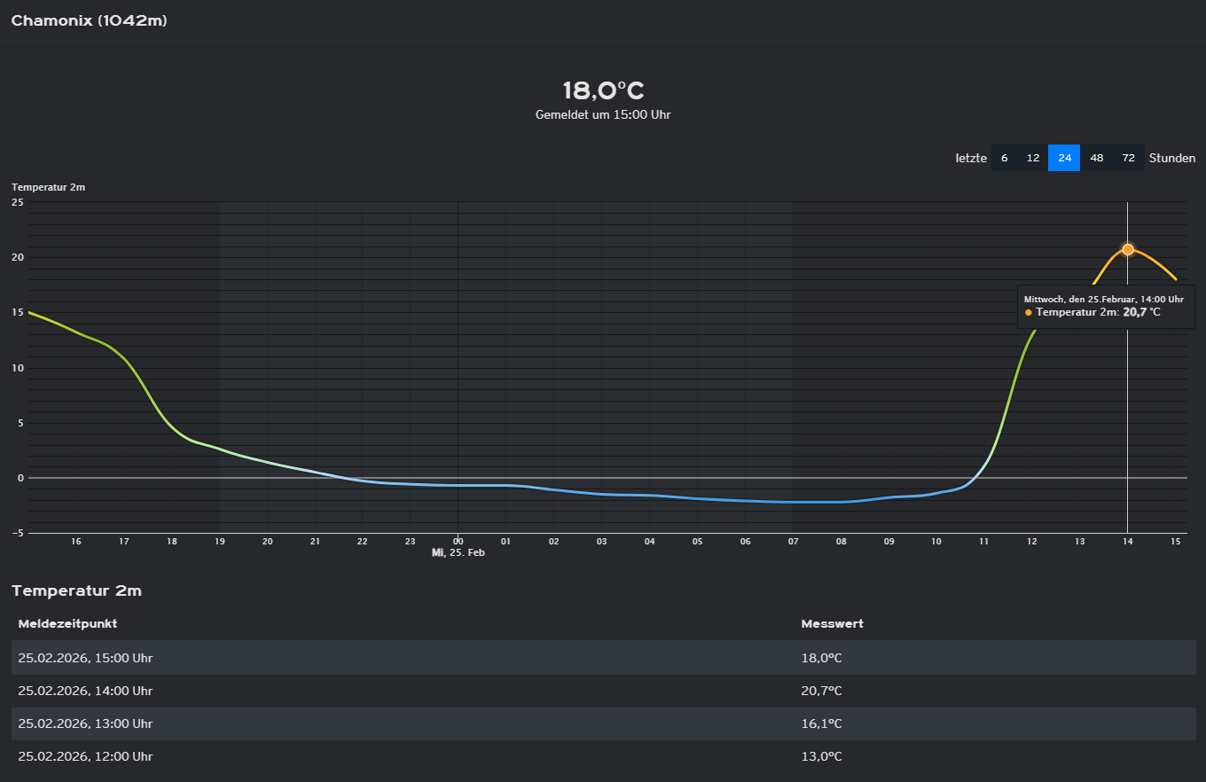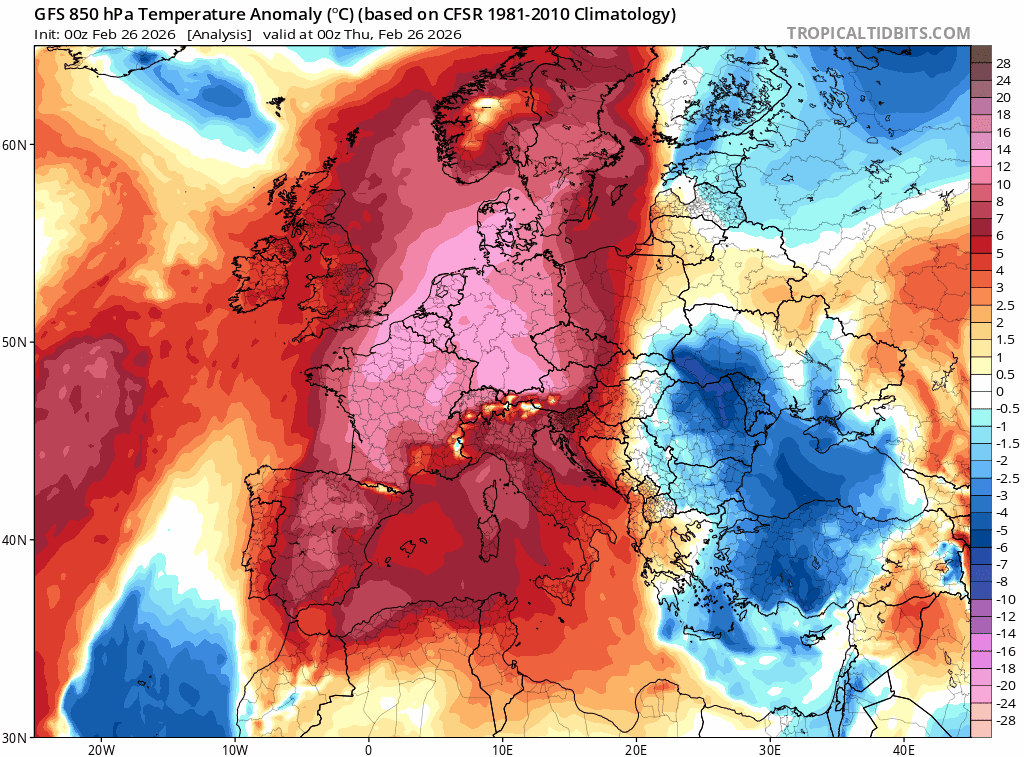 Sieht so aus ... satte Wärme aus Südwesten. Flächenweite Temperaturrekorde gestern in Frankreich ... in Charmonix fast +21 GradNicolai hat geschrieben: 26.02.2026 - 08:42 ...und die warmen Temperaturen scheinen sich in den Modellen zu zementieren...zumindest mal bis Ende nächster Woche.