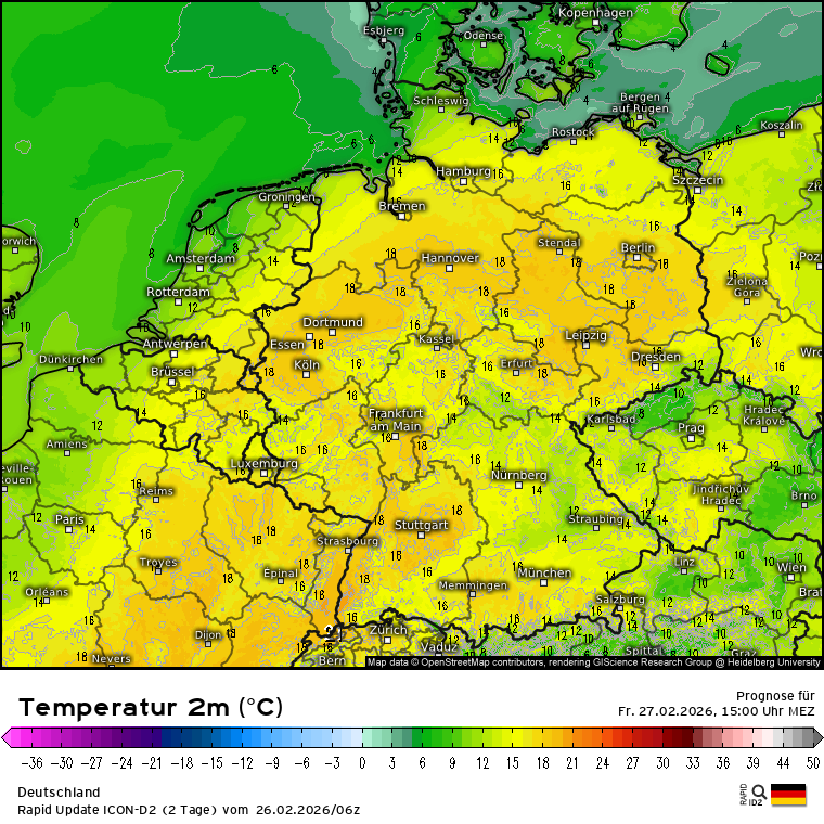 Diesen Winter gab es schon außergewöhnlich starke regionale Temperaturunterschiede. Für uns hier im Südwesten hatten wir mal wieder wochenlange p...warme nasse Südwestströmung, heute ist sogar 20 Grad angesagt...der Nordosten hatte dagegen wochenlangen und durchaus strengen Dauerfrost. Auch in den Alpen wars je nach Anströmung regional sehr verschieden. Wenn man über alles mittelt gleicht es sich wahrscheinlich wieder ziemlich aus.zonk hat geschrieben: 27.02.2026 - 08:07 Also aus meiner Sicht war das temperaturmässig ein ganz normaler Winter bislang.