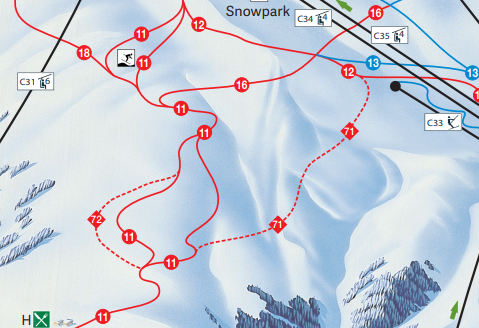 - Aus Skiroute 61 wird 71 und neue Skiroute 72