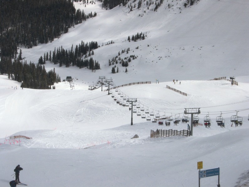 A-Basin, so die gängige Abkürzung ist mit 3797 m Bergstationshöhe das am höchsten hinauf reichende Skigebiet im Summit County. Werbung wird mit dem highest skiable terrain in North America gemacht – als Summit Elevation wird 13050 ft, oder 3978 m angegeben. Dies erweist sich insofern als typischer Marketing-Trick wenn man weiß, dass die Lifte „nur“ bis knapp 3800 m hinauf reichen (IMHO ist Loveland das höchste Skigebiet in Nordamerika) und die fehlenden 200 Hm über eine heikle Gratwanderung erreicht werden können und als „Piste“ eine selbstmörderische Rinne, den „North Pole“ offerieren. Diesen Rinnen an der Upper East Wall verdankt A-Basin einen Teil seines legendären Rufs – die beiden anderen großen Besonderheiten sind der große baumfreie Schneeschüsselbereich oberhalb von 3500 m und die Steilhänge an der DSB Pallavicini, die im lifterschlossenen Bereich ihresgleichen suchen, was Steilheit und Schwierigkeit angeht. Wer von sich behauptet super Skifahren zu können, der findet hier Hänge, die ihn fordern! Interessant übrigens die Genese der orographischen Bezeichnung „Pallavicini“ – der Namensgeber, ein österreichischer Graf bestieg im 19. Jhd. zusammen mit Heiligenbluter Bergführern die heute nach ihm benannte Eisrinne am Großglockner. Obwohl die Skihänge im A-Basin nicht ganz so steil sind, hat man offensichtlich Pallavicini als Synonym für grenzenlose Steilheit importiert…