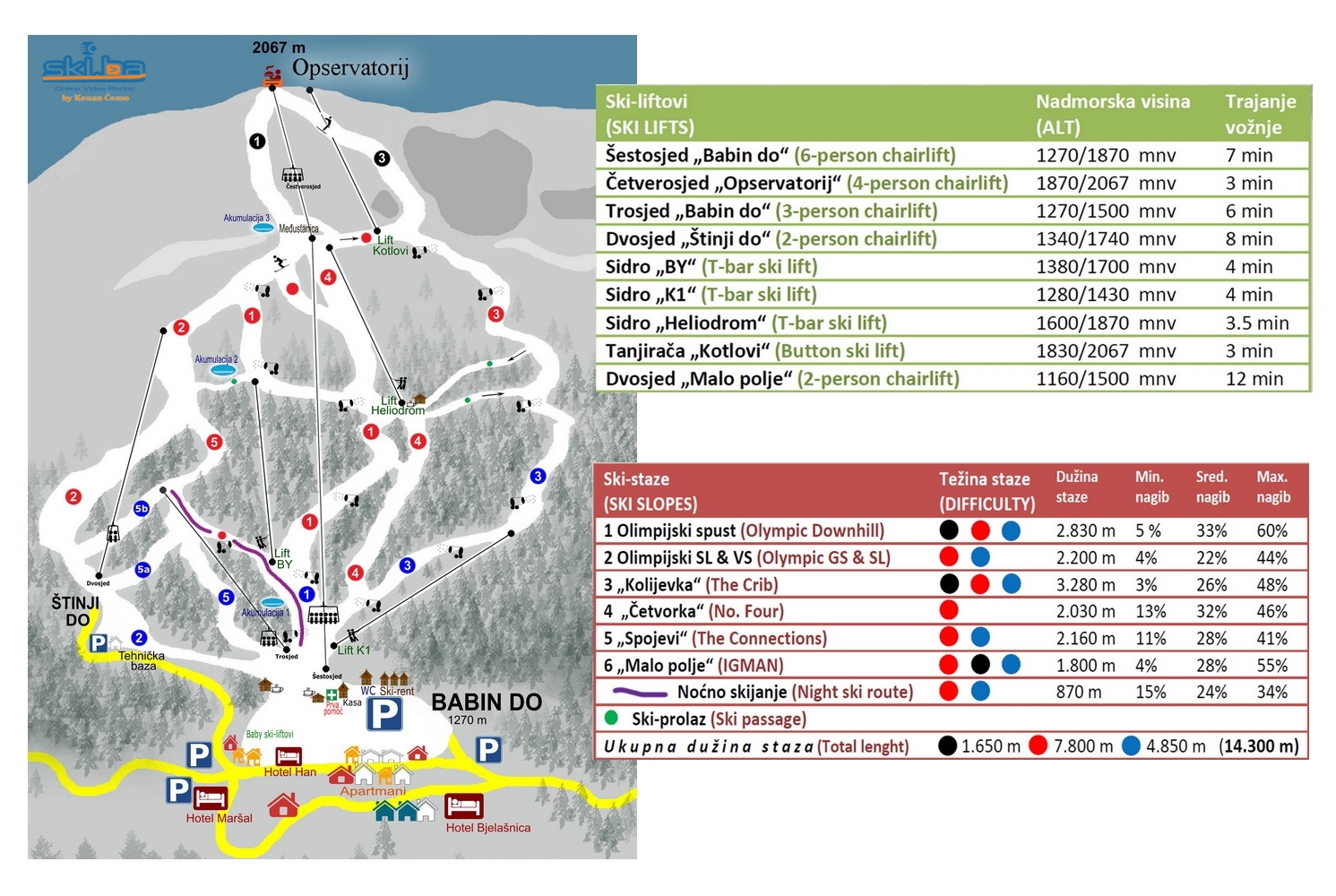 Der neuesten Pistenkarte zufolge verbleibt der Teller-Schlepplift "Kotlovi" (7) zum Gipfel momentan die einzige, nur für Skifahrer nutzbare Aufstiegshilfe nach ganz oben.