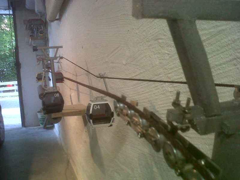 So, hier die versprochenen Bilder des neuen Stützendesigns. Noch sind keine Wartungspodeste, Leitern etc. angebracht. Habe ebenfalls angefangen die ersten Teile der Bahn auf Plattformen an die Wand zu bringen. Talstation, Stütze 2 und Stütze 3 sind bereits installiert. Zum Schutz vor Autotürremplern habe ich vorerst 2cm dicke Rohrisollierung an den Plattformen befestigt....