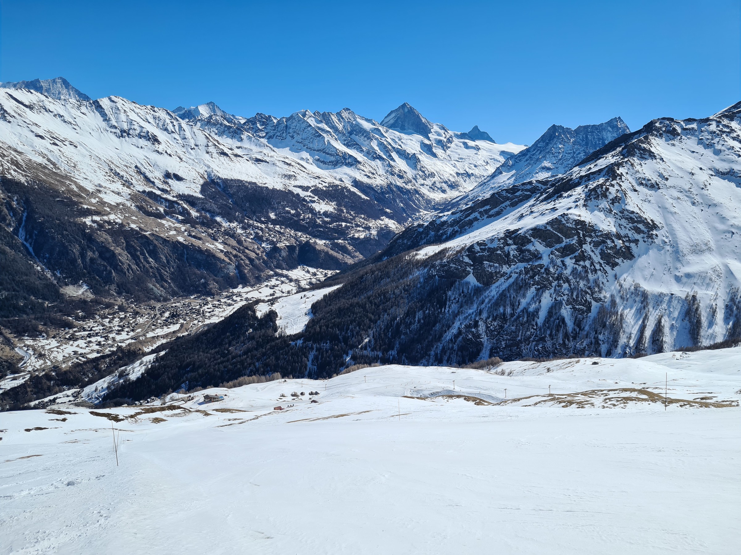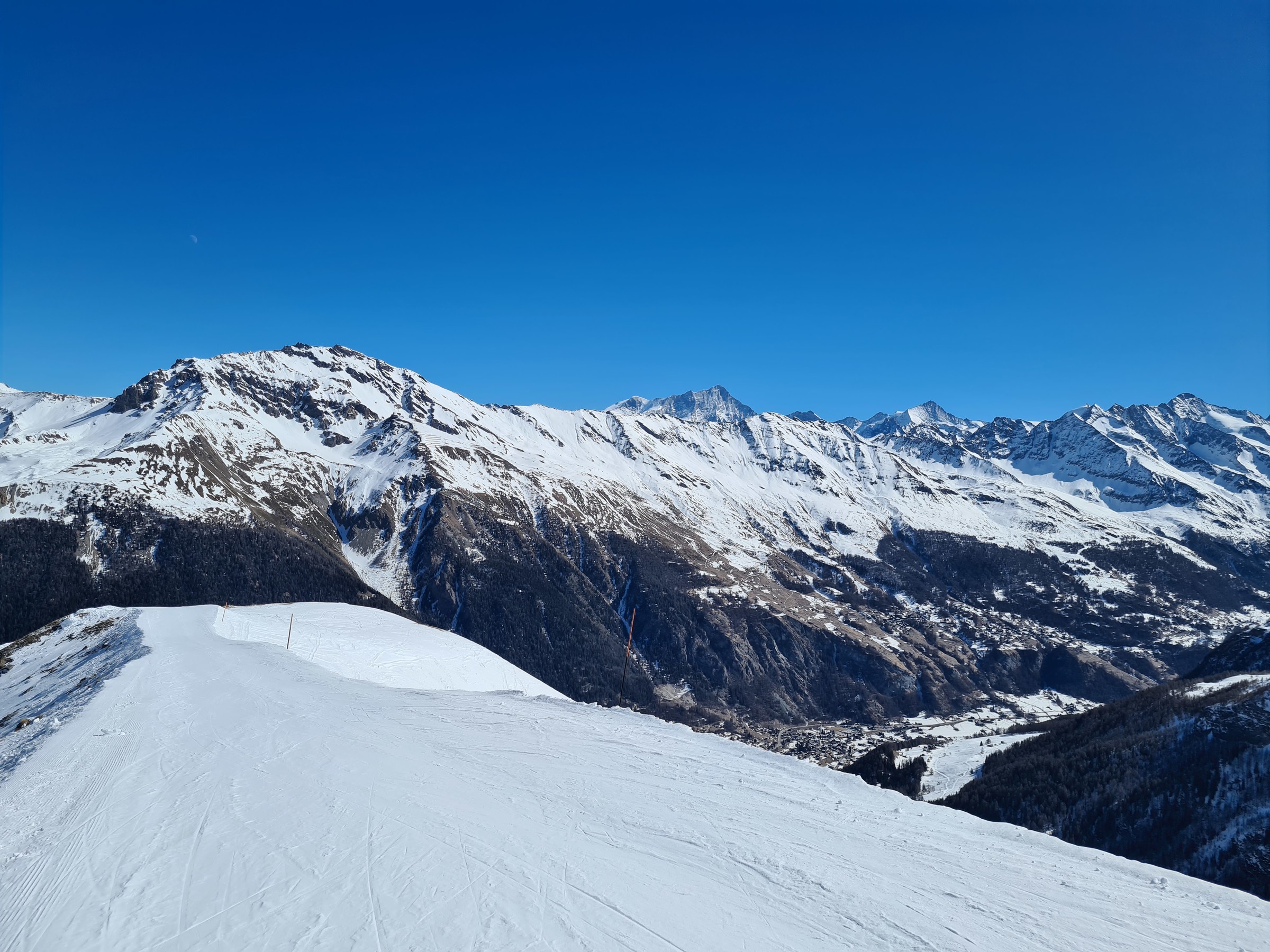 Steilhang Piste Artsinol mit Tiefblick nach Evolène und La Forclaz, mit dem einzigen Skigebiet im Wallis welches ich noch nicht besuchen konnte. Hoffe fest, das der Lift nächste Saison wieder in Betrieb gehen kann!
