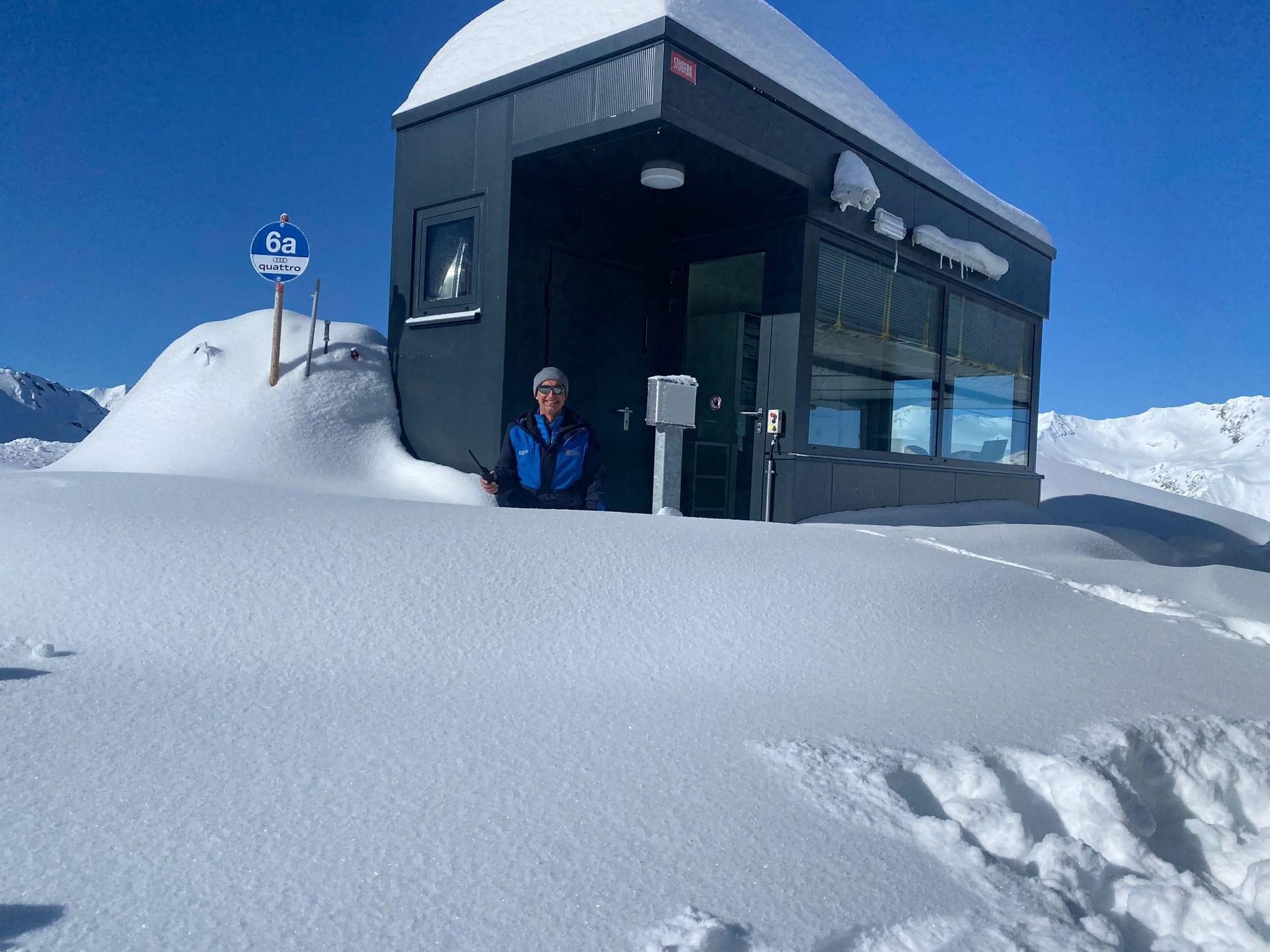 Straße wieder offen, das Skigebiet wird verzögert aufsperren. Scheint wirklich gut was gegeben zu haben, auf dem Dach der TS Roßkar & Hohe Mut wird Schnee vom Dach geschaufelt.