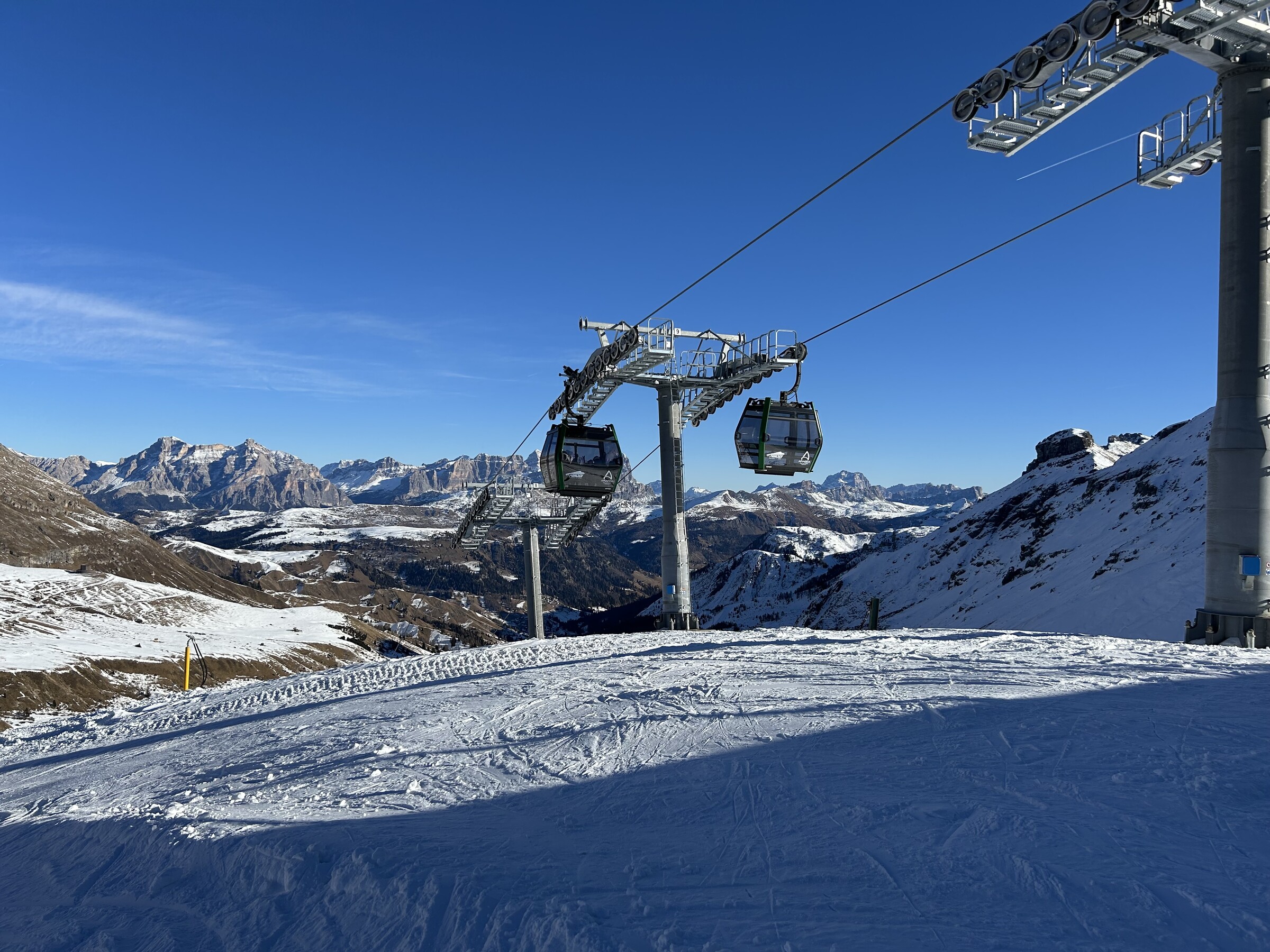 Heute ging in Canazei der obere Teil der Diego auf; der untere wird sicher bald folgen. Das ist dann richtig gut. Wie man im November gut beobachten konnte, hat die SITC die Schneifenster viel konservativer als andere genutzt, d.h. nur bei wirklich guten Schneibedingungen losgelegt, und dann die Grundpräparierung auch lange "ausdampfen" lassen, bevor die Pisten final präpariert und geöffnet wurden. Okay, in der Höhenlage kann man sich das auch eher leisten. Das zahlt sich aber jetzt absolut in der Qualität aus.