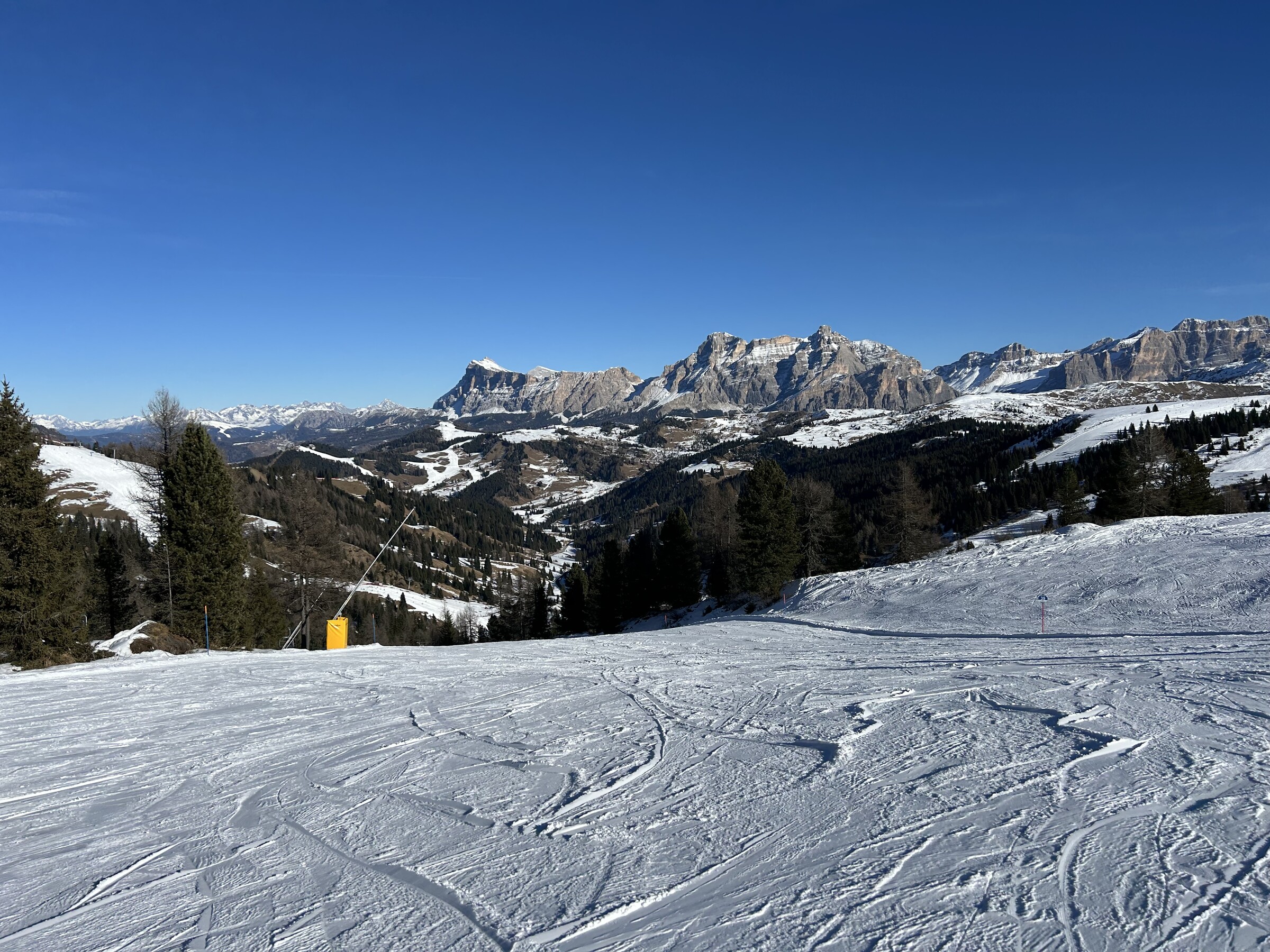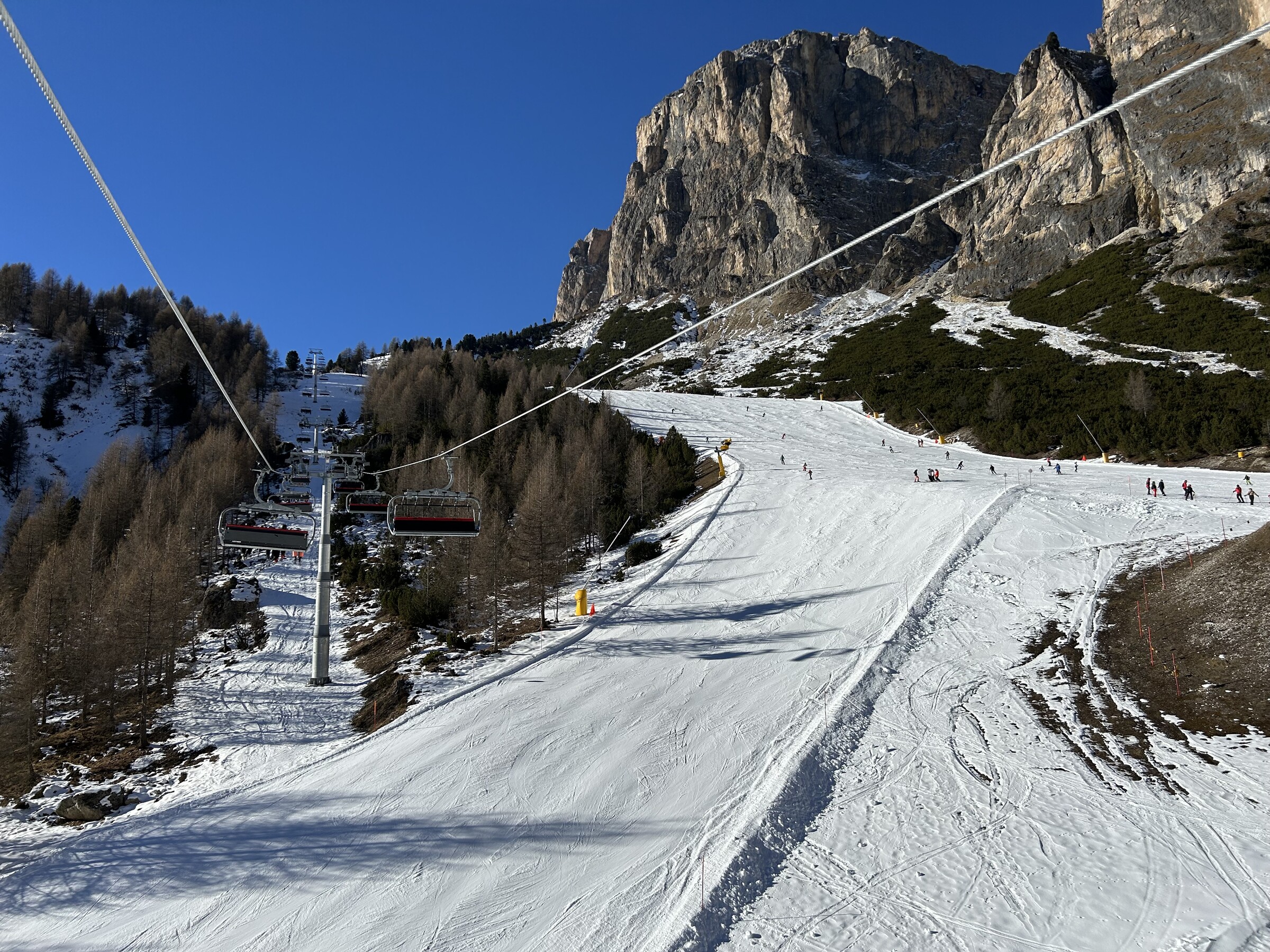 Highlights: Vulcano ist jetzt offen und abgesehen von ein paar krümeligen Stellen sehr griffig, Tomba und -- mein persönlicher Fav -- Thöni auch. Auf der gesamten Thöni bin ich zur Mittagszeit keinem einzigen Skifahrer begegnet, obwohl ich mehrere Foto-Pausen eingelegt hatte. Auch die beiden schwarzen Coronelle Pisten sind griffig.