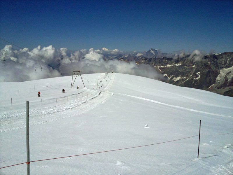 Die alte Pendelbahn ist am abreissen, die Maste ohne Seil steht noch, gut sieht man hingegen die Masten der neuen Schwarzssee Express Verlängerung. Schlief erstmals in der Bergsteigerunterkunft am dem kl. Matterhorn. War sehr gut.