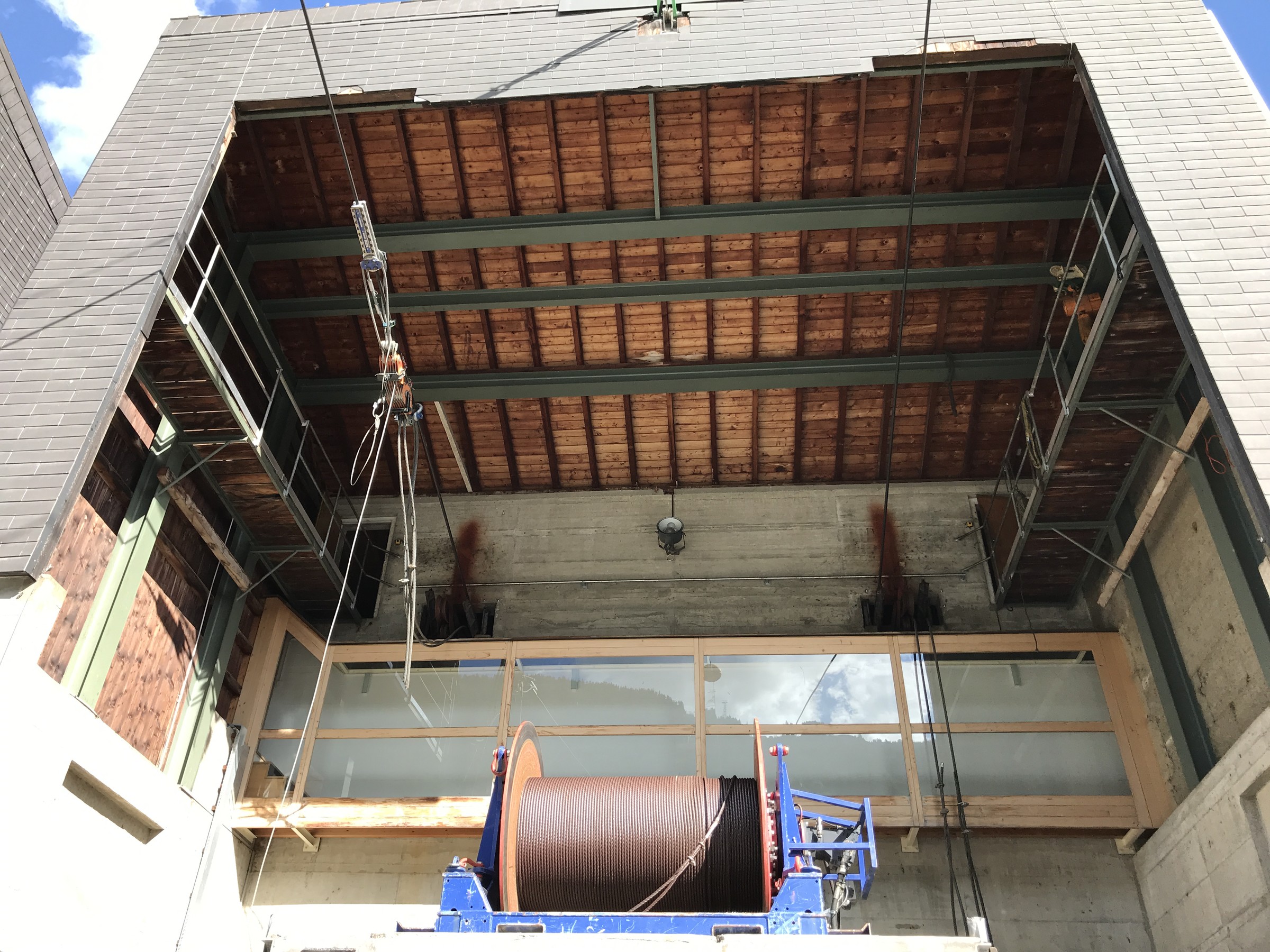Das neue Seil hat eine andere Schlaglänge und soll deshalb im Niederhalter bei der Talstation ruhiger laufen. Anscheinend gab es Messungen wo ergeben haben dass die Anlage zu laut sei. Die Untersicht der Talstation wurde nun auch verkleidet und ich denke dass diese bisher fehlenden paar Quadratmeter Blech viel eher der Grund für die erhöhte Lautstärke war. Das alte ansonsten intakte Seil soll sobald es ins Konzept passt auf einer anderen Anlage verwendet werden.